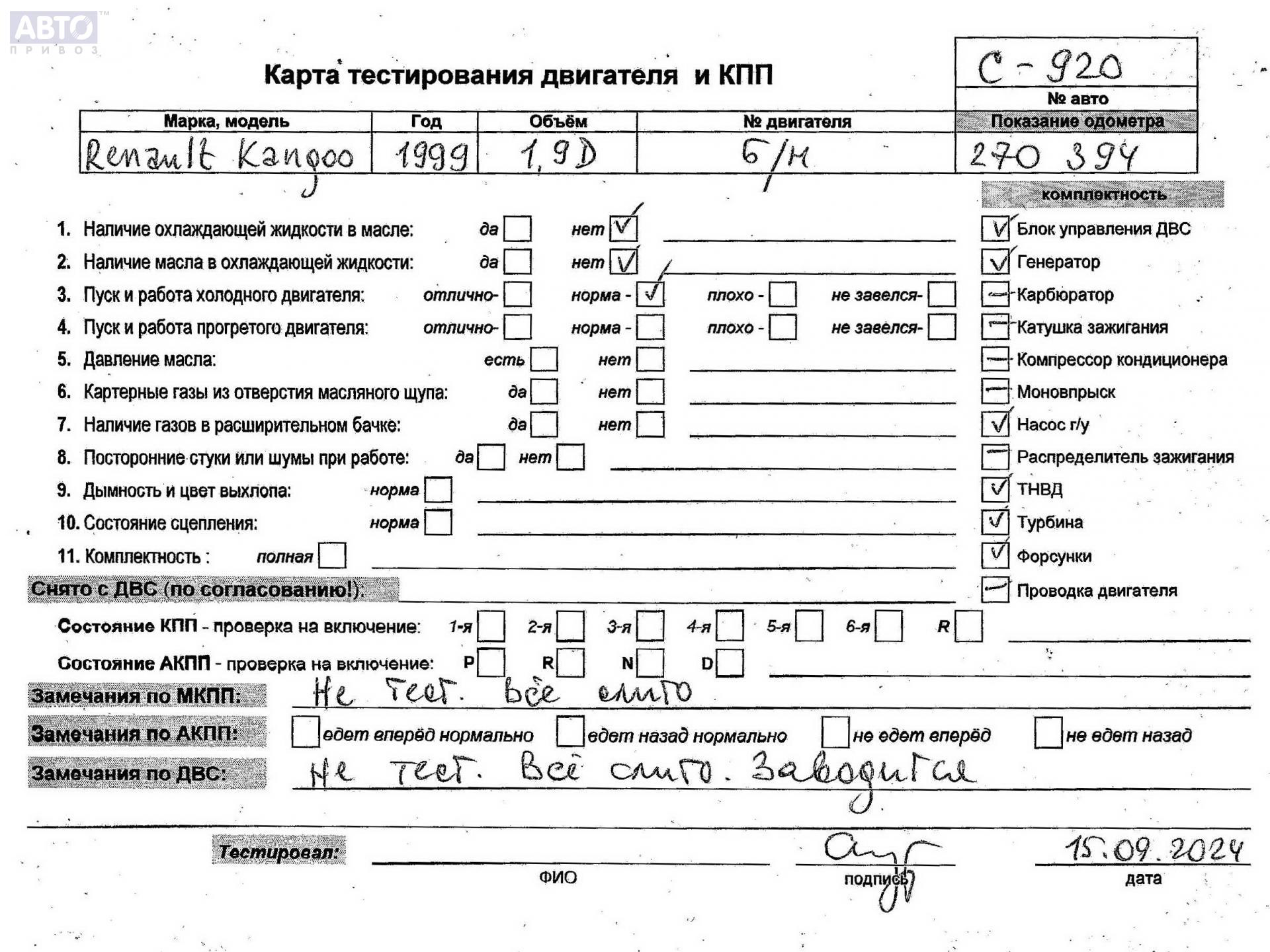 | Марка / Модель / Год: | Renault Kangoo I (1998-2008) 1999 |