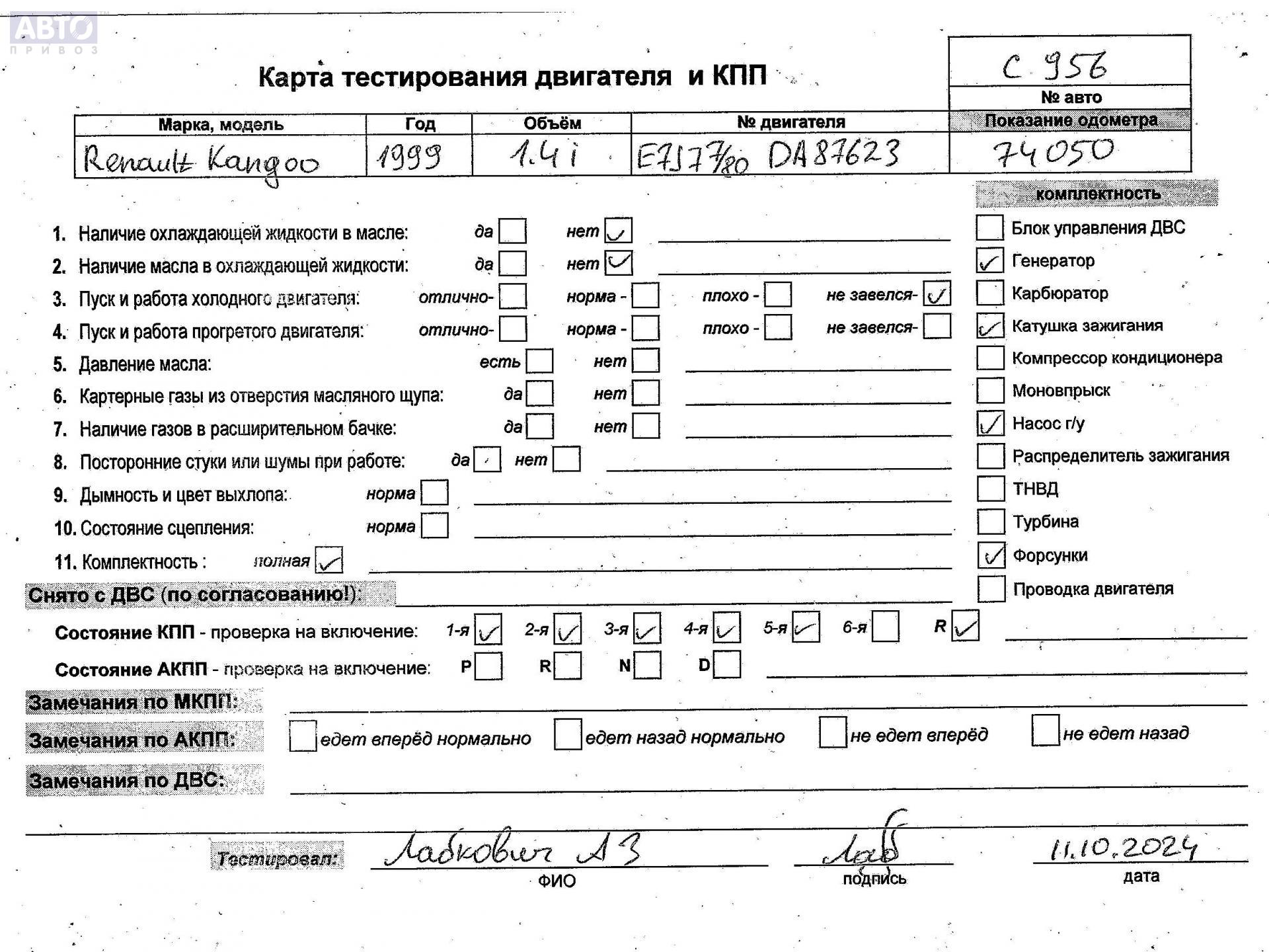 | Автомобиль / VIN: | C0956 VF1KC0CAF19035347 |