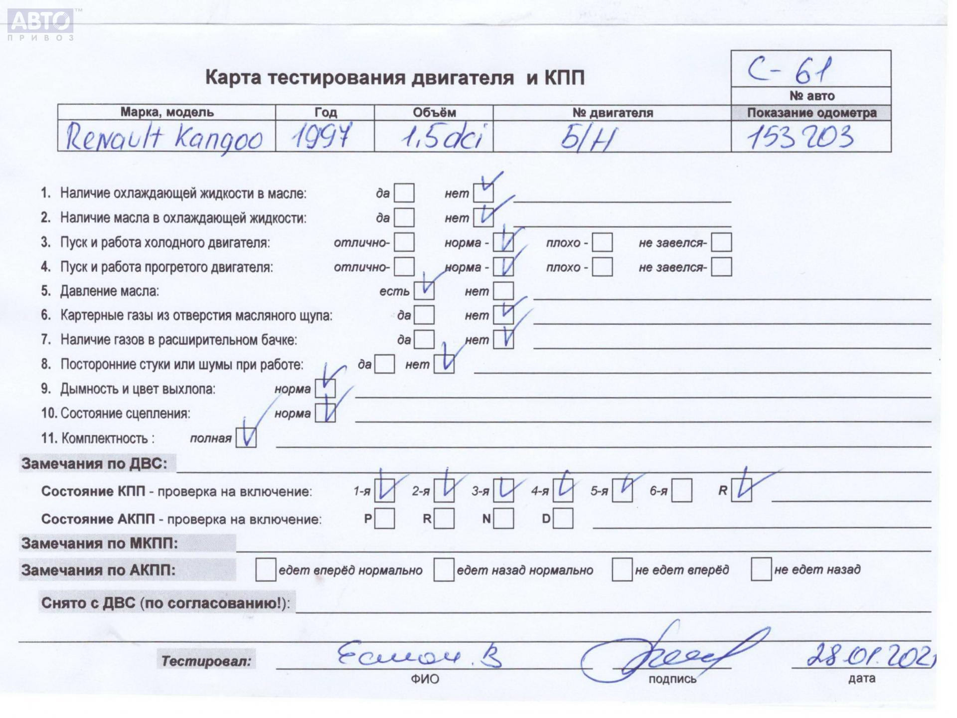 | Марка / Модель / Год: | Renault Kangoo I (1998-2008) 2008 |