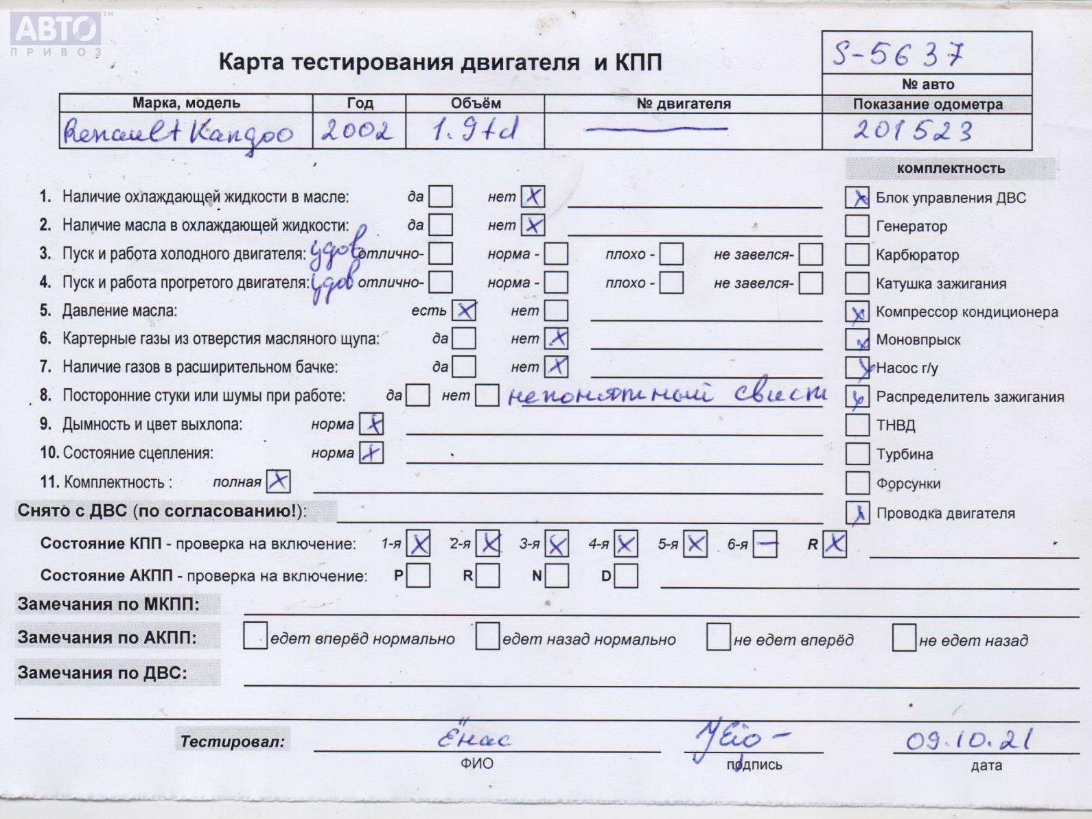 | Марка / Модель / Год: | Renault Kangoo I (1998-2008) 2002 |