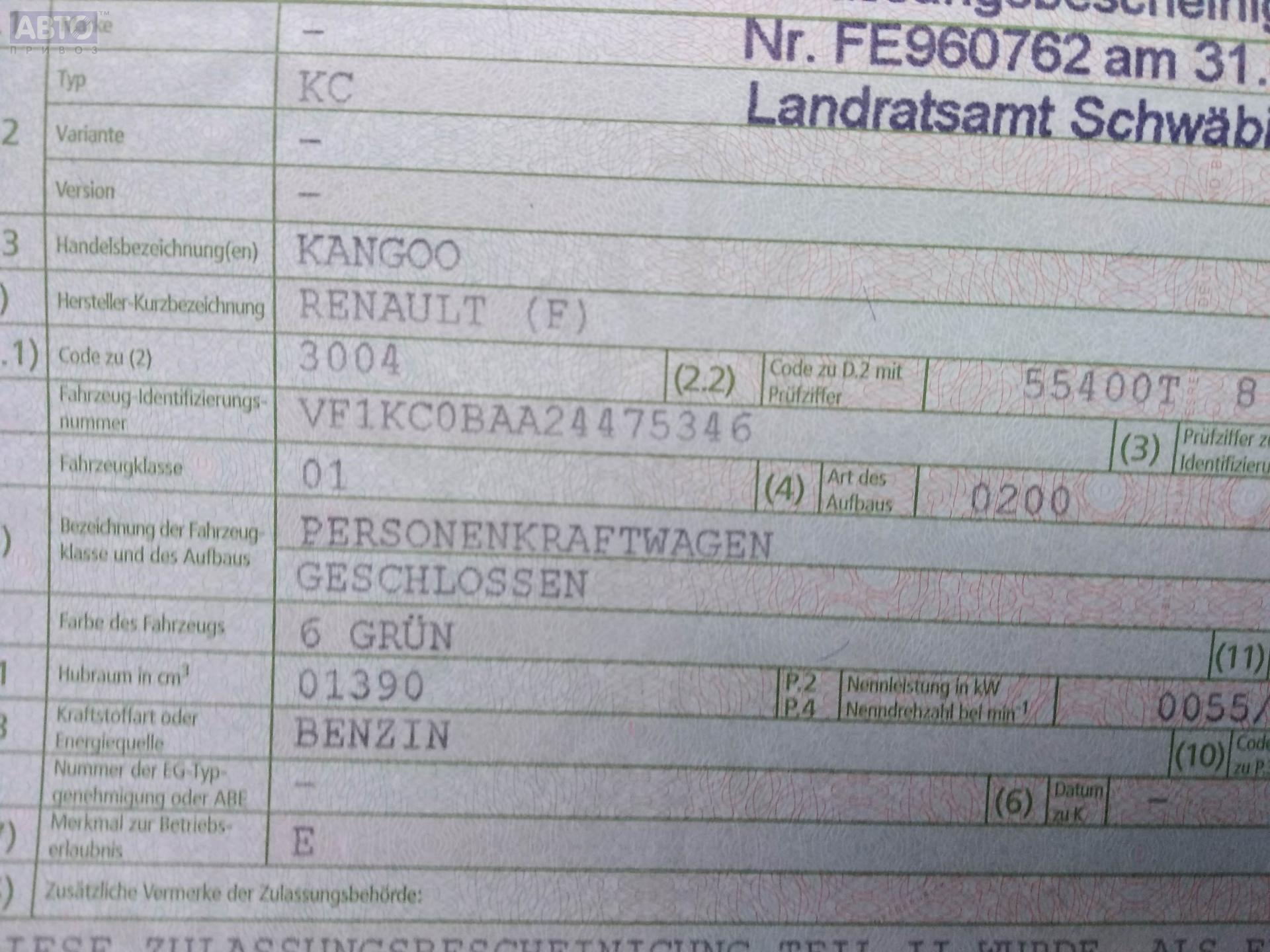 | Марка / Модель / Год: | Renault Kangoo I (1998-2008) 2001 |