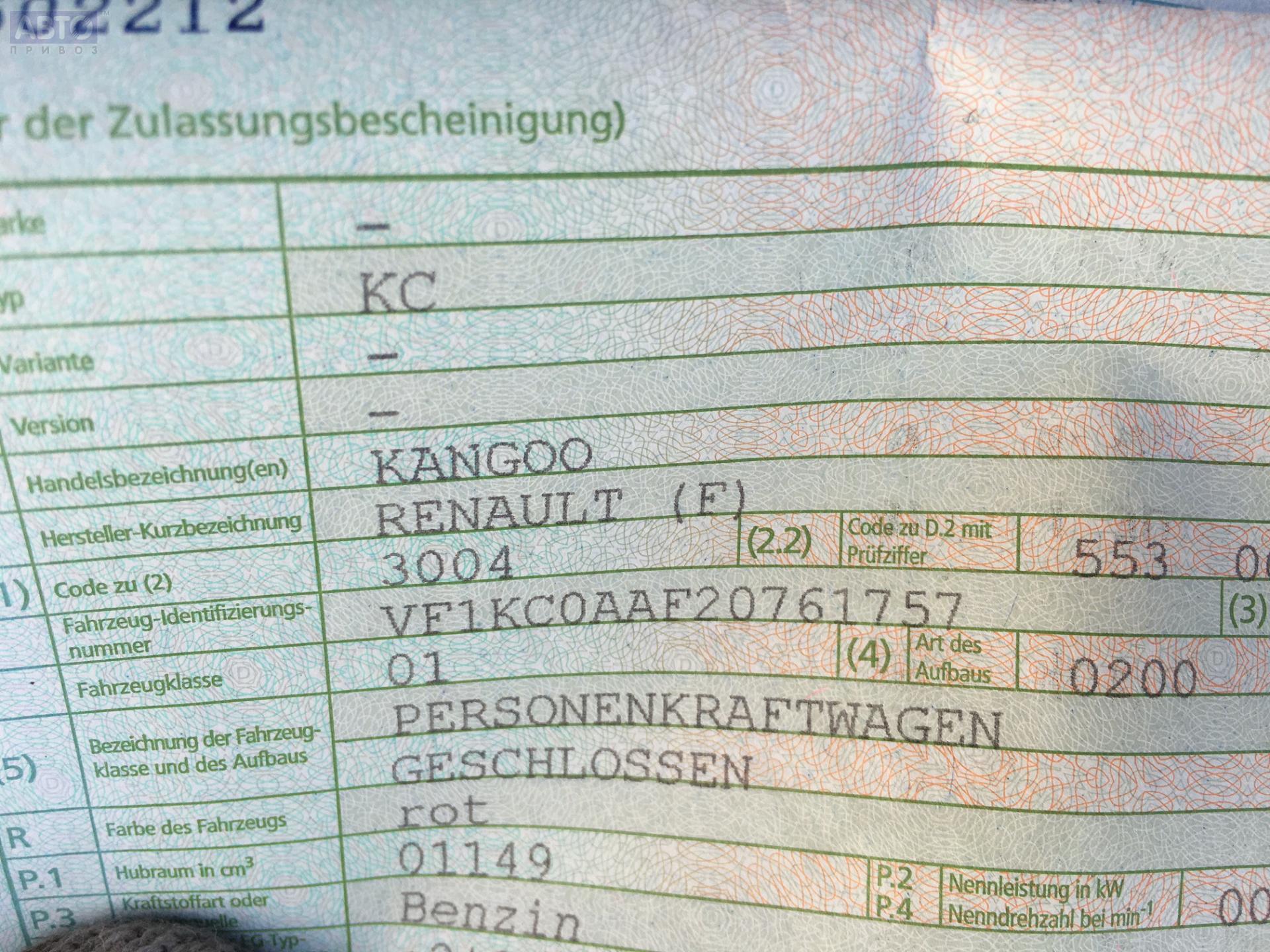 | Марка / Модель / Год: | Renault Kangoo I (1998-2008) 1999 |