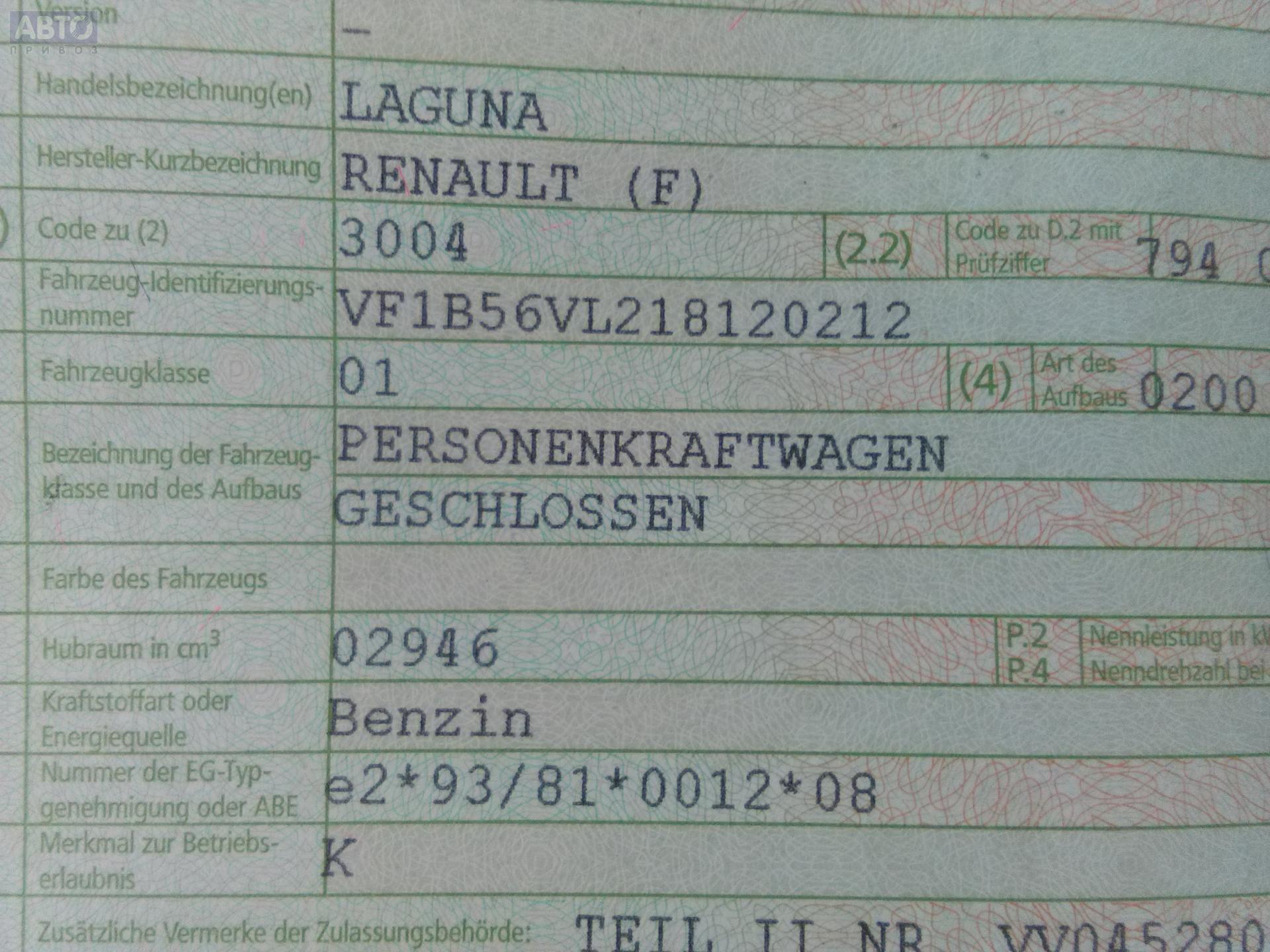 | Марка / Модель / Год: | Renault Laguna I (1993-2000) 1998 |