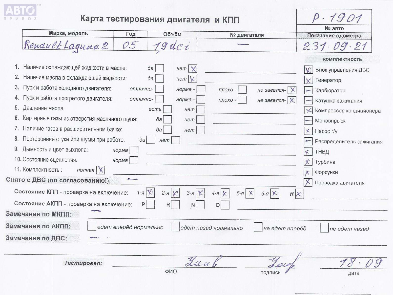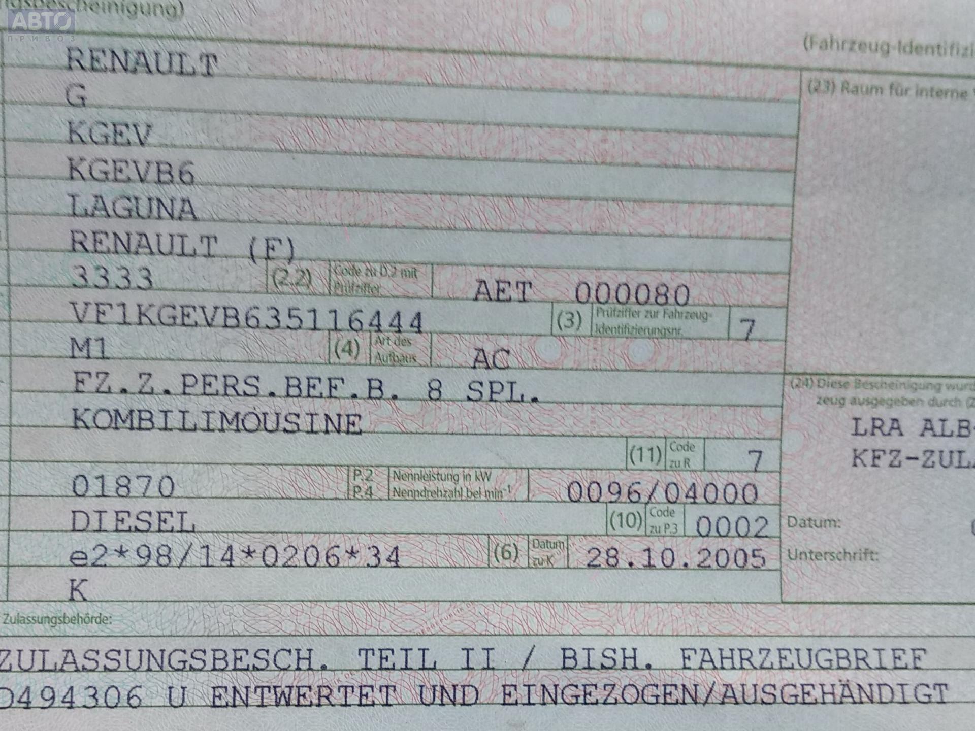 | Марка / Модель / Год: | Renault Laguna II (2001-2007) 2005 |