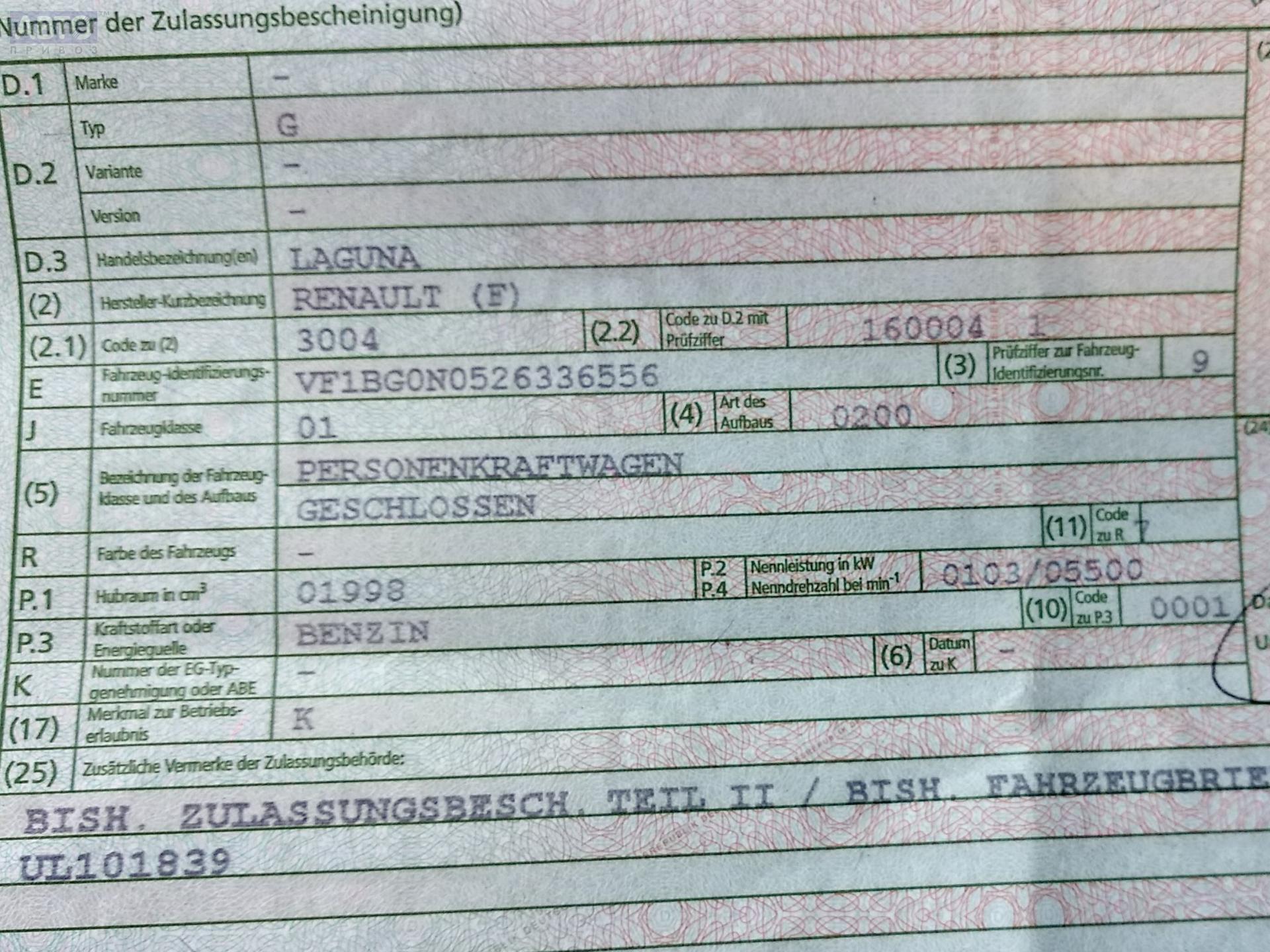 | Марка / Модель / Год: | Renault Laguna II (2001-2007) 2002 |