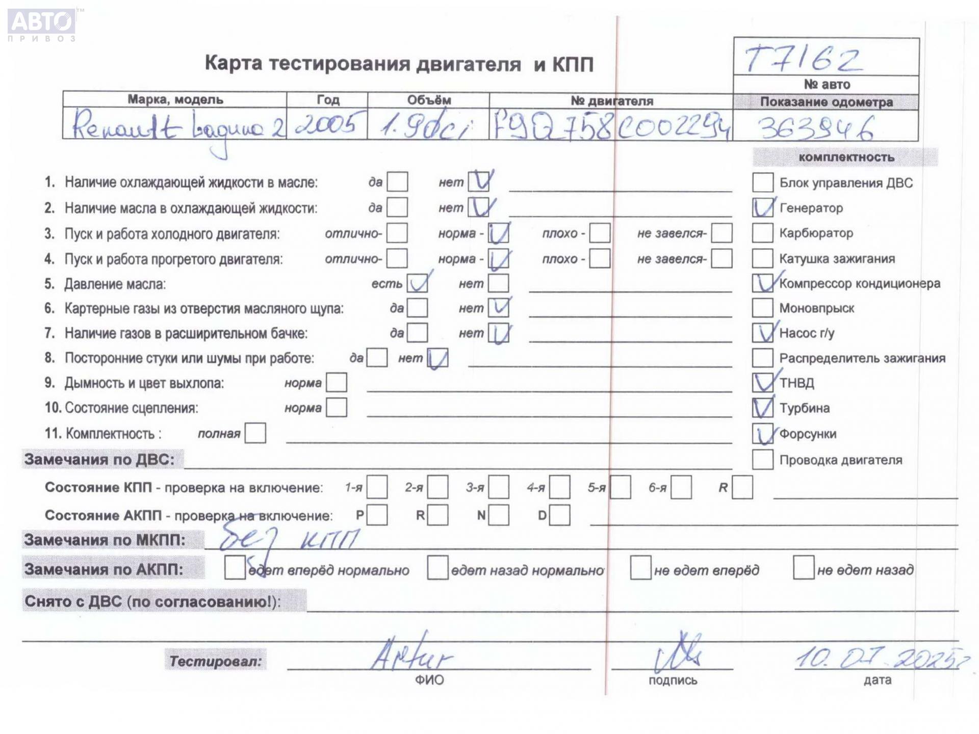 | Автомобиль / VIN: | T7162 VF1KG4VB634721293 |