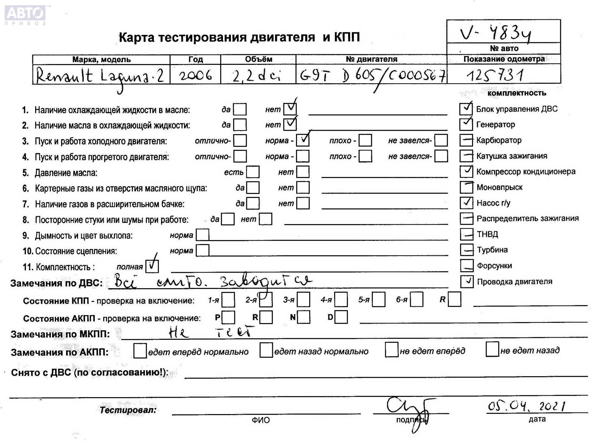 | Марка / Модель / Год: | Renault Laguna II (2001-2007) 2006 |