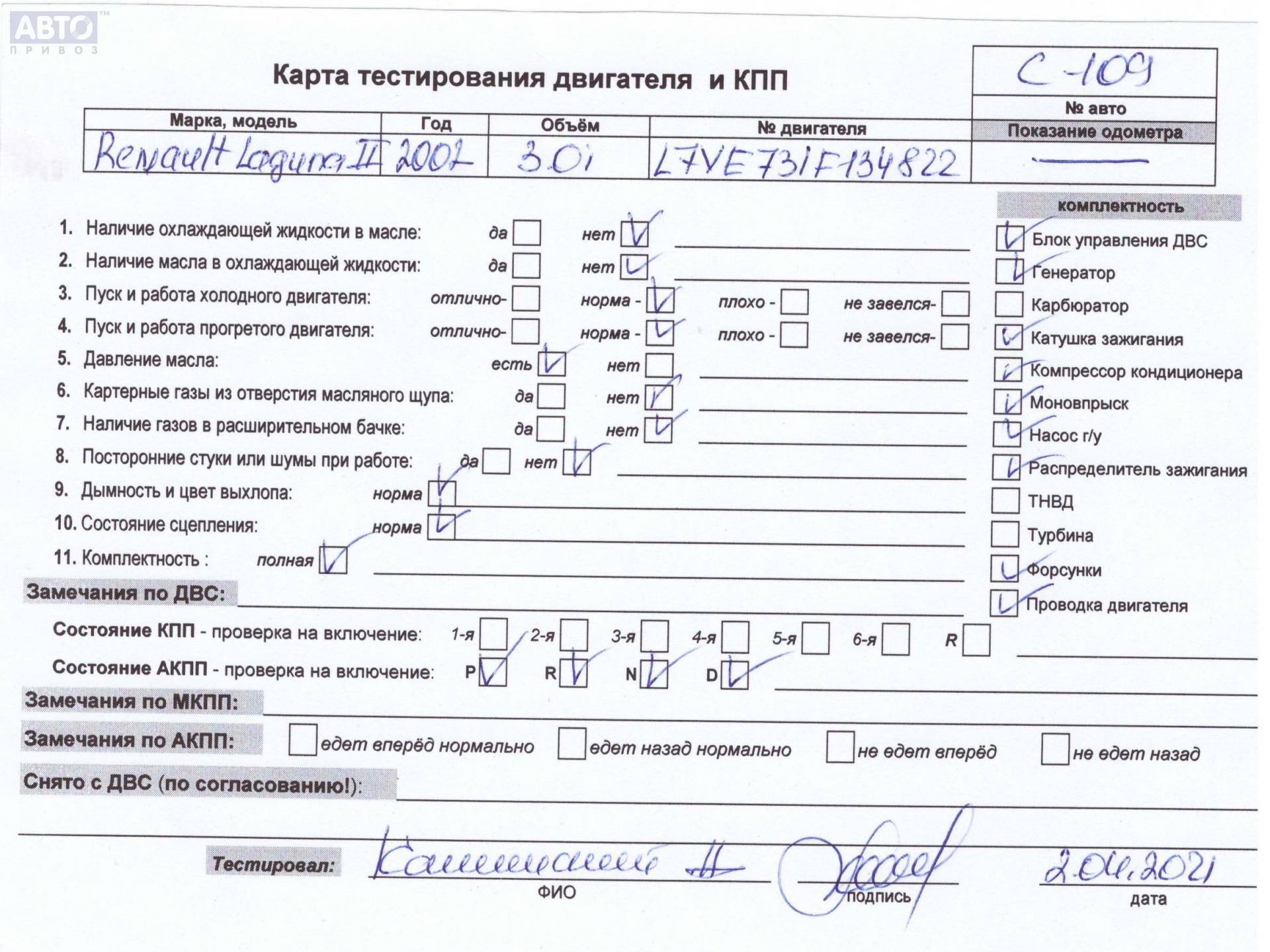 | Автомобиль / VIN: | C0109 VF1KG0D0B26081990 |