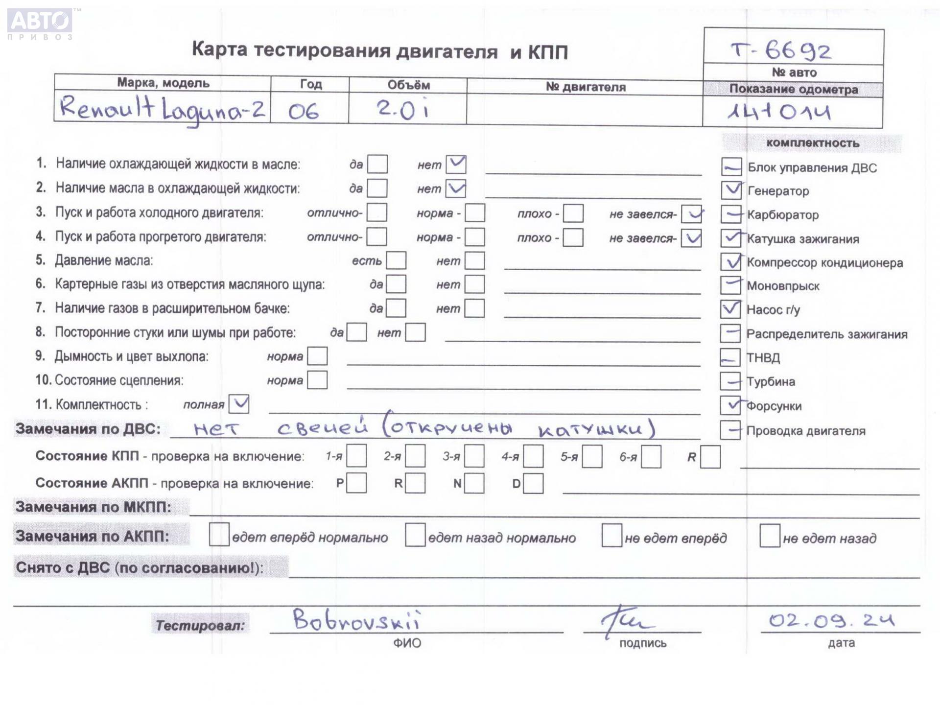 | Марка / Модель / Год: | Renault Laguna II (2001-2007) 2006 |