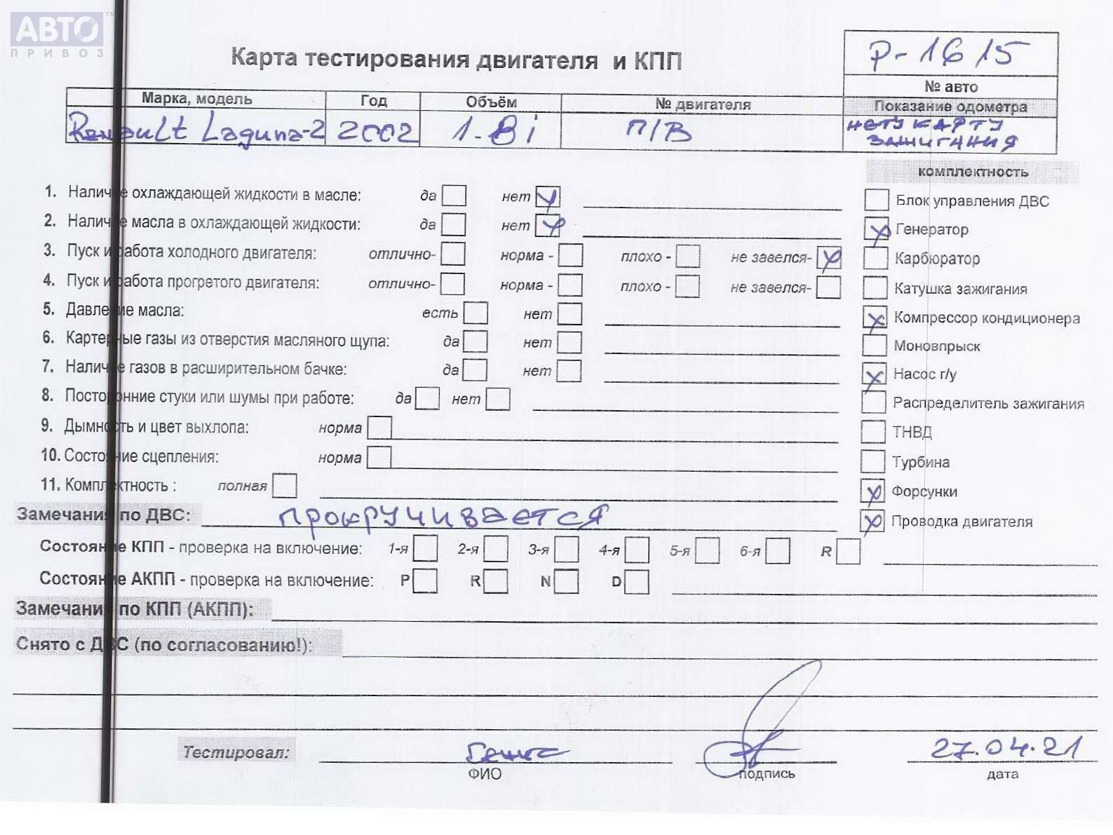 | Марка / Модель / Год: | Renault Laguna II (2001-2007) 2002 |