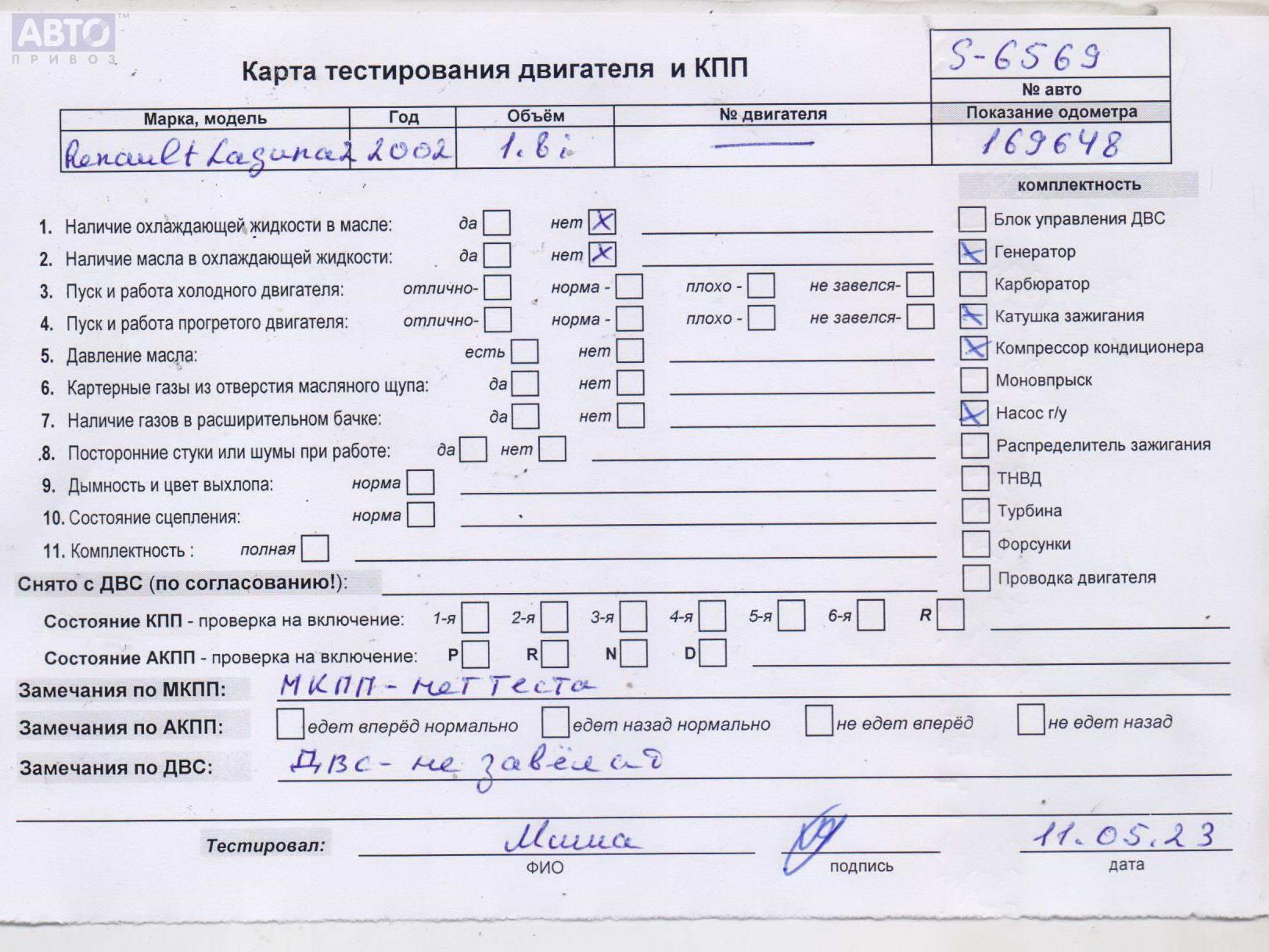 | Автомобиль / VIN: | S6569 VF1BG0M0527433024 |