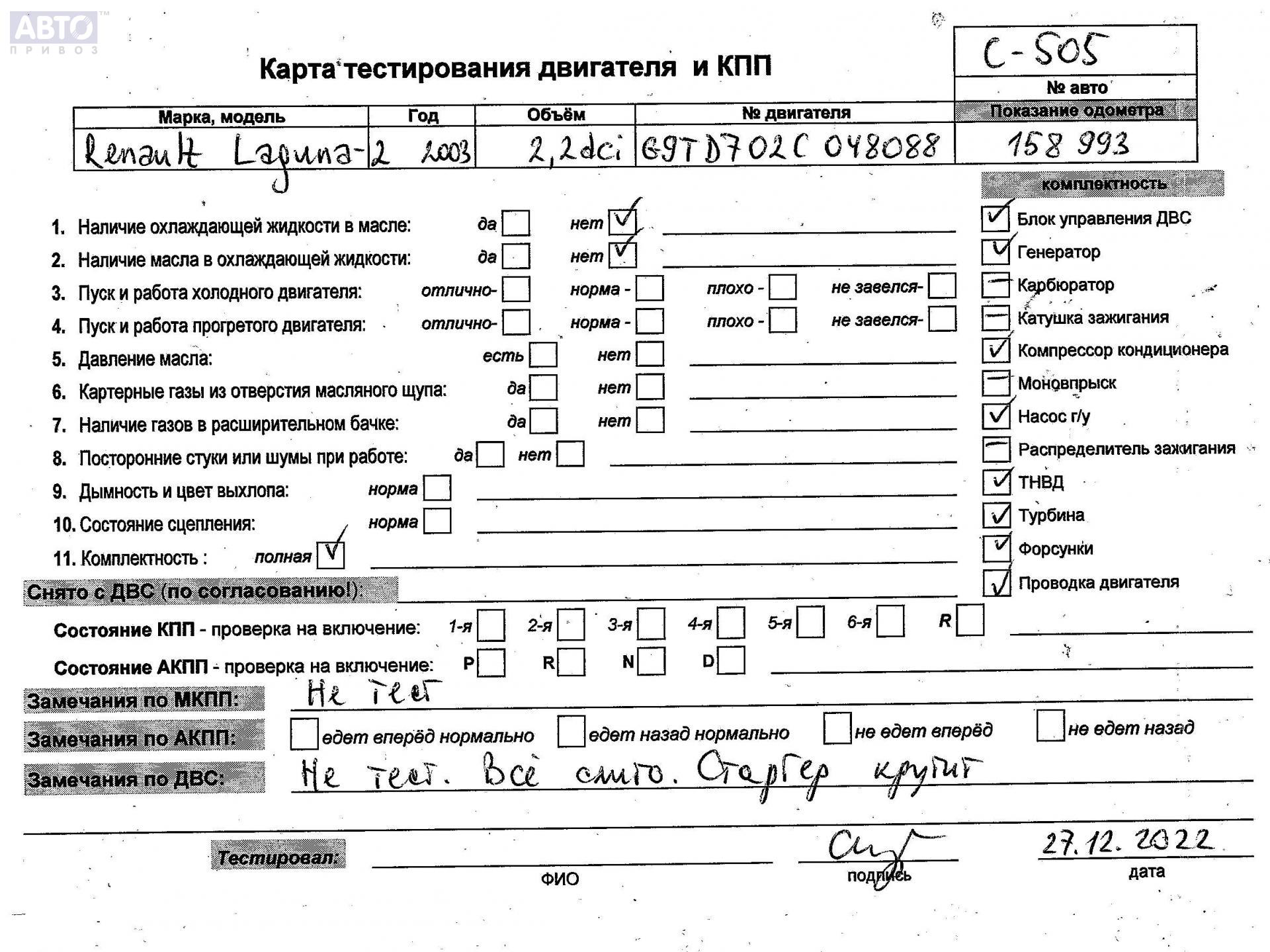 | Марка / Модель / Год: | Renault Laguna II (2001-2007) 2003 |