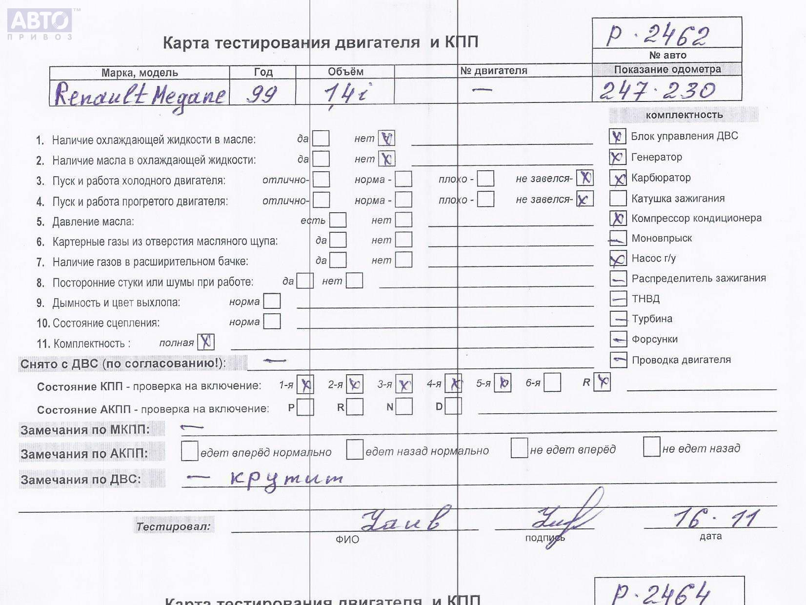 | Автомобиль / VIN: | P2462 VF1DA0W0520254688 |