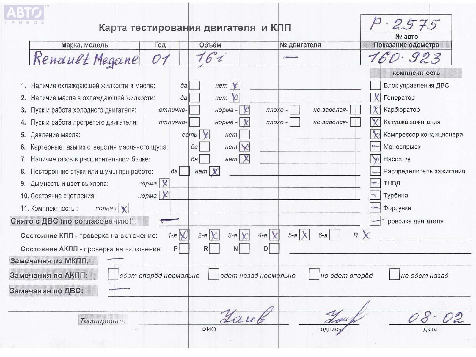 | Автомобиль / VIN: | P2575 VF1DA1J0524522266 |