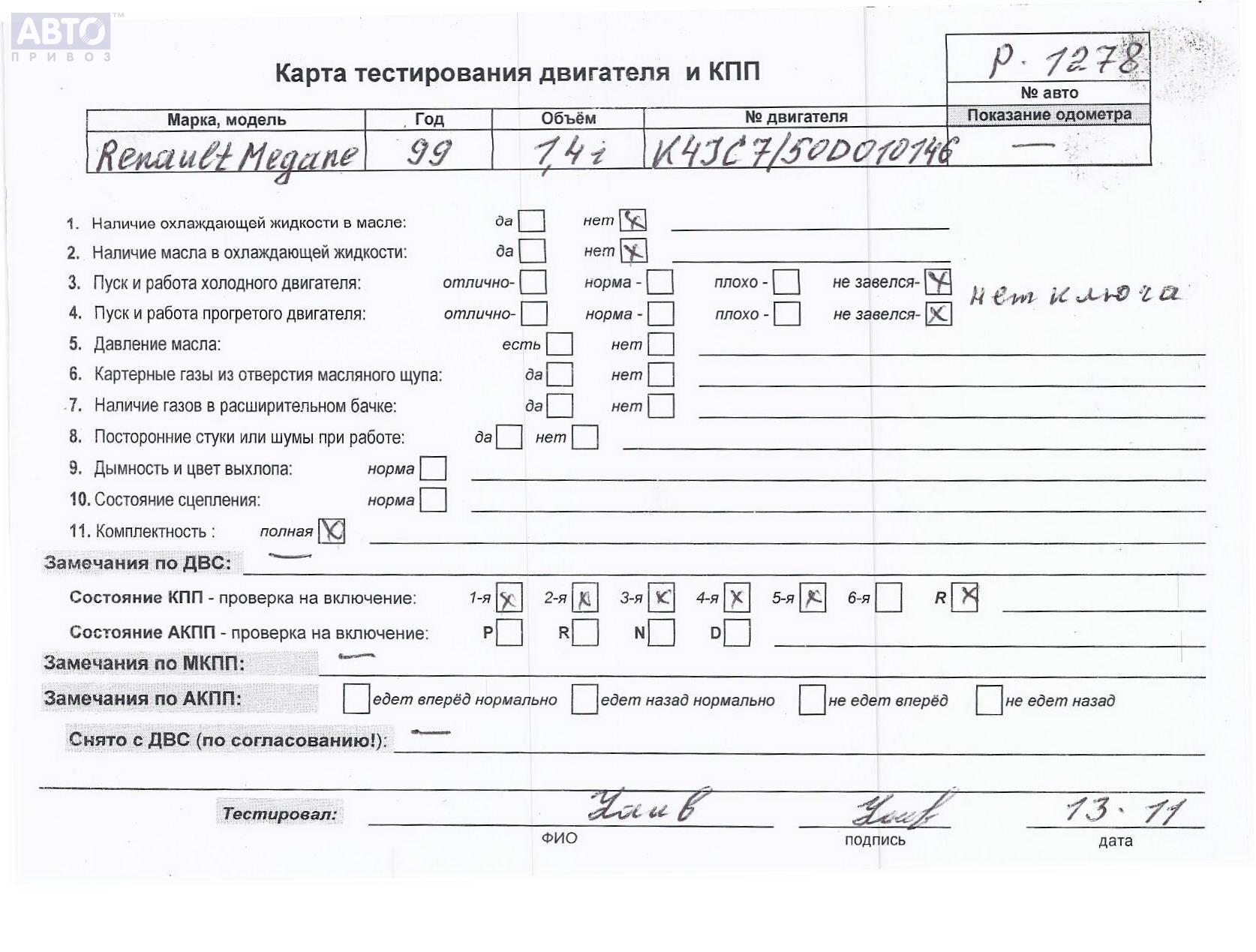 | Марка / Модель / Год: | Renault Megane I (1995-2003) 1999 |