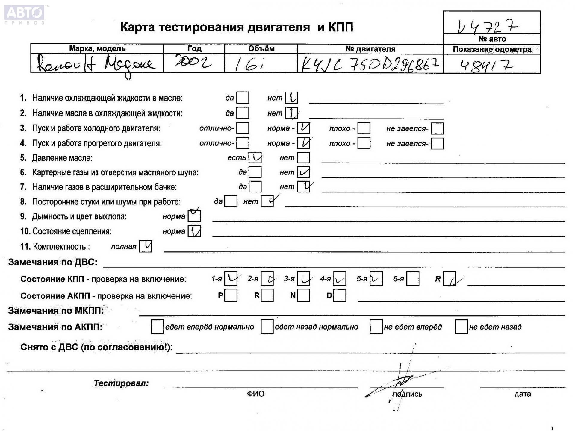 | Автомобиль / VIN: | V4727 VF1BA0D0526443104 |