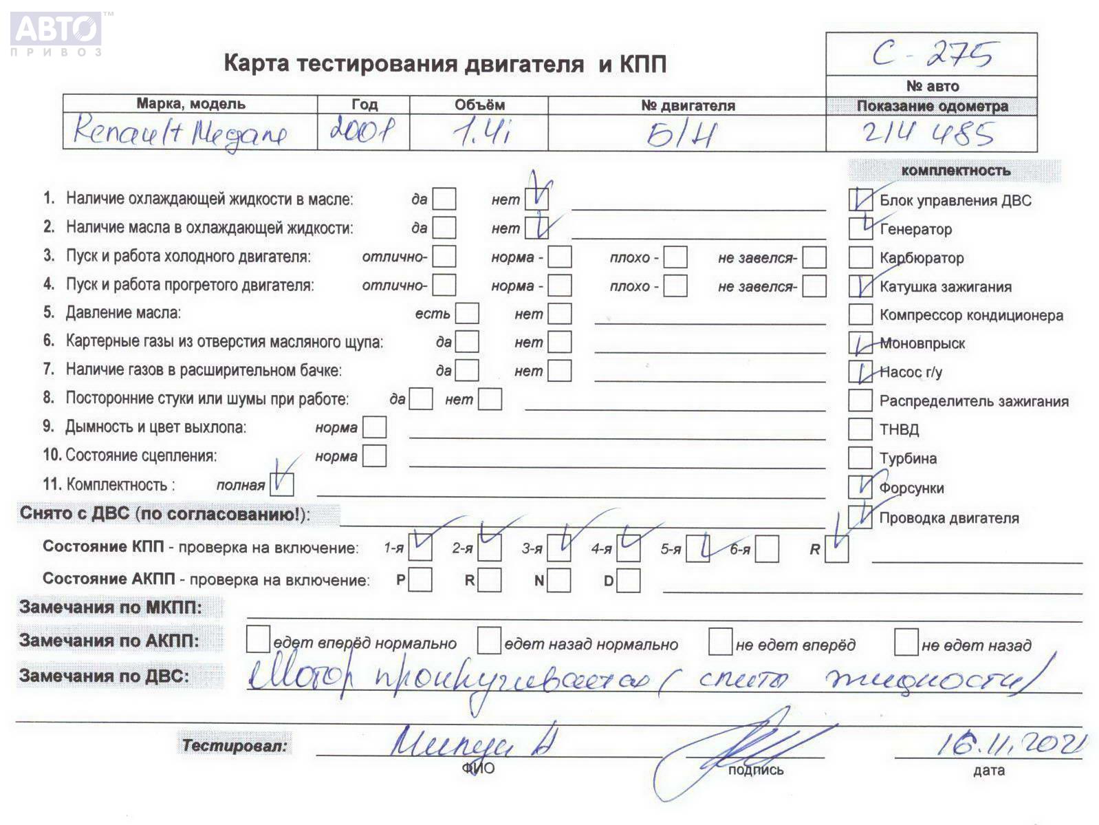 | Автомобиль / VIN: | C0275 VF1DA1H0524575237 |