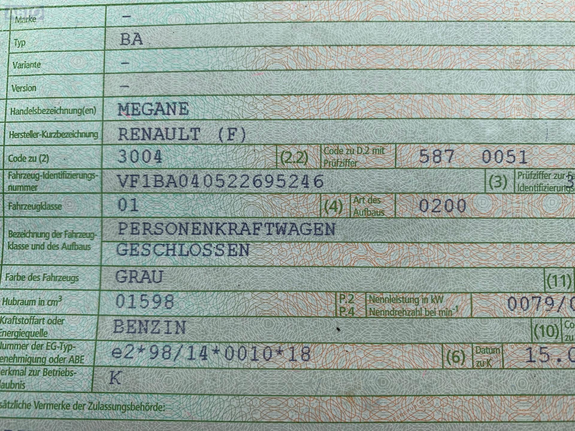 | Марка / Модель / Год: | Renault Megane I (1995-2003) 2000 |