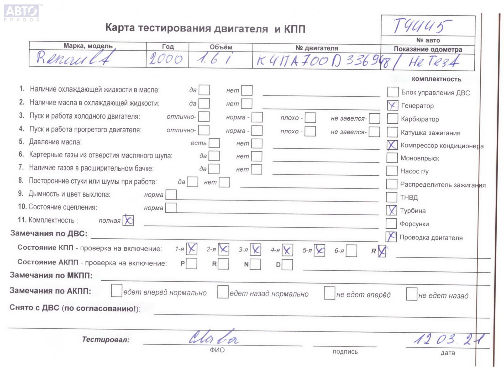 | Автомобиль / VIN: | T4445 VF1BA040522695246 |