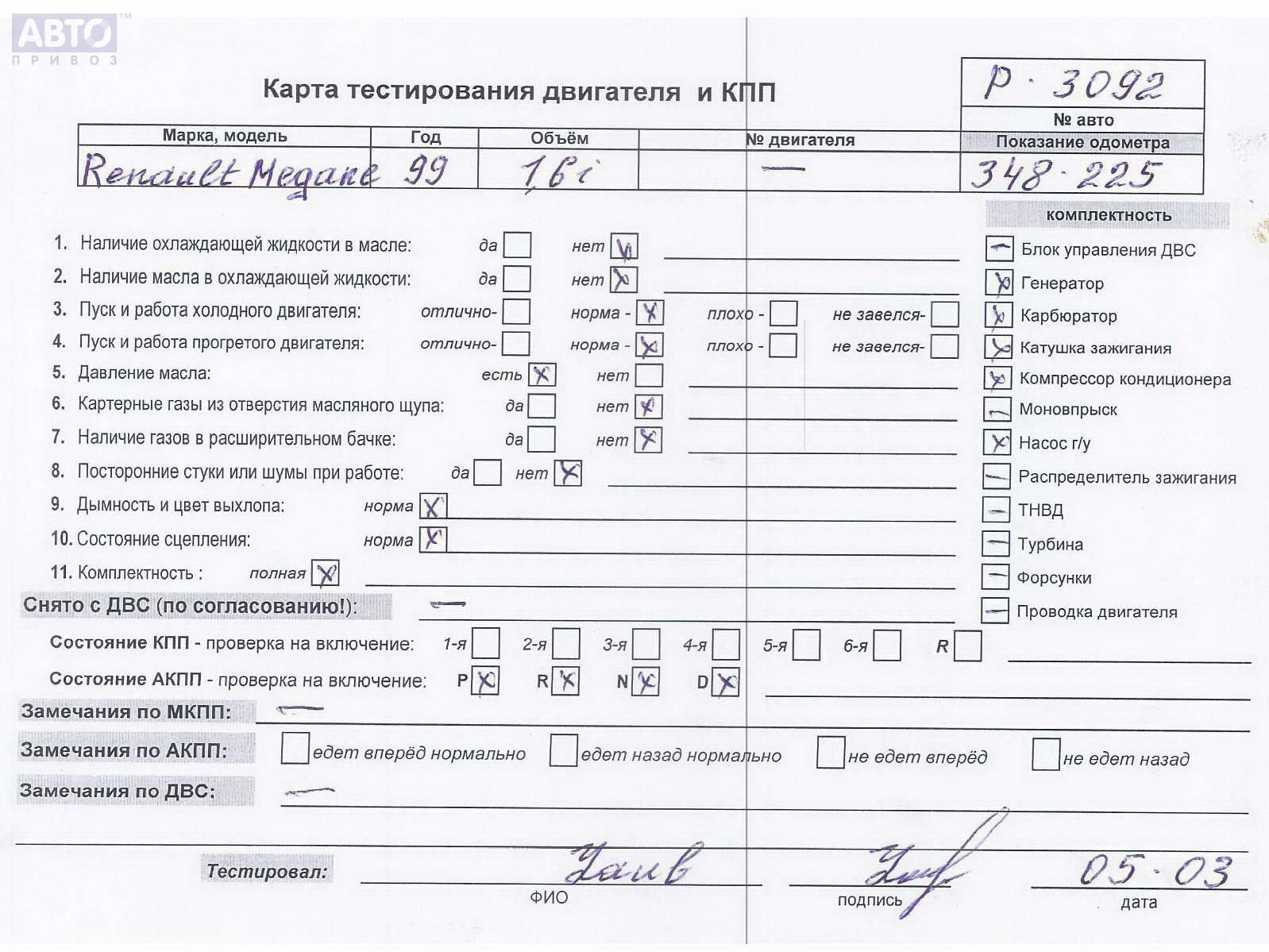 | Автомобиль / VIN: | P3092 VF1BA040222231136 |