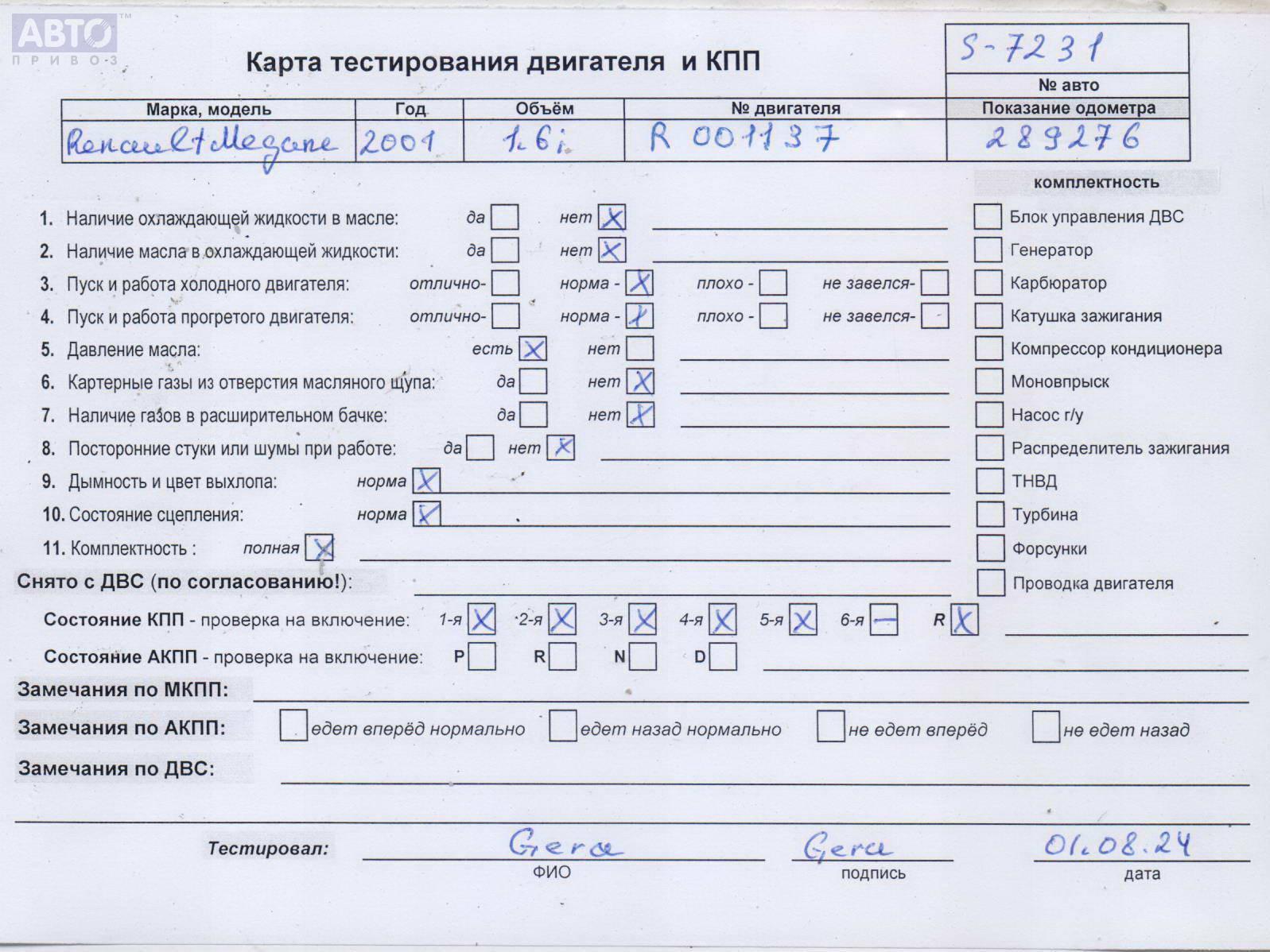 | Марка / Модель / Год: | Renault Megane I (1995-2003) 2001 |
