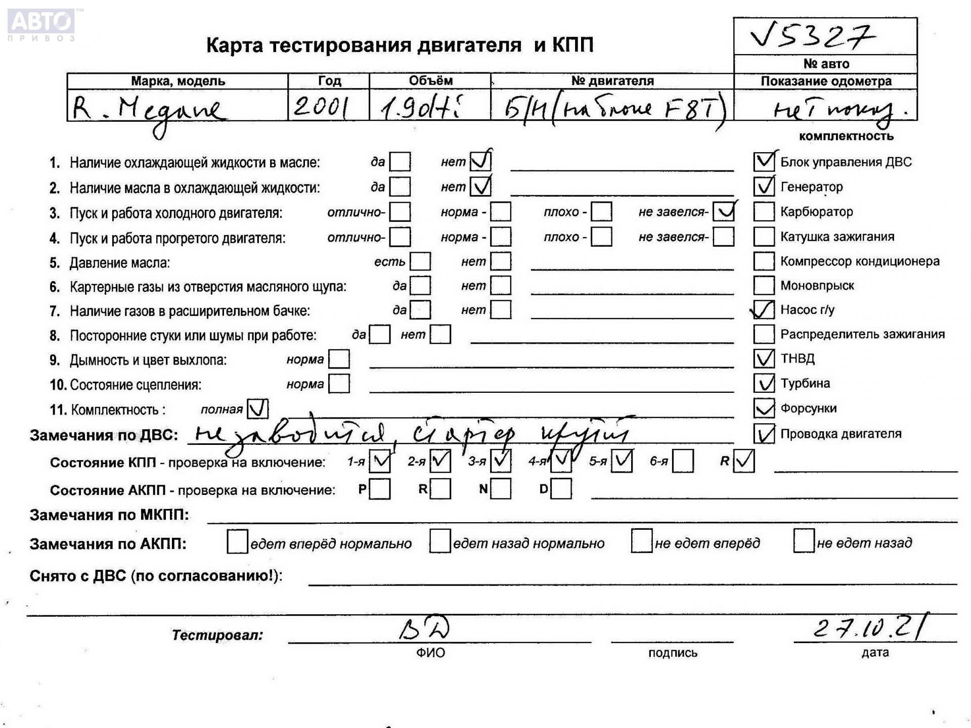 | Автомобиль / VIN: | V5327 VF1BA1U0526064010 |