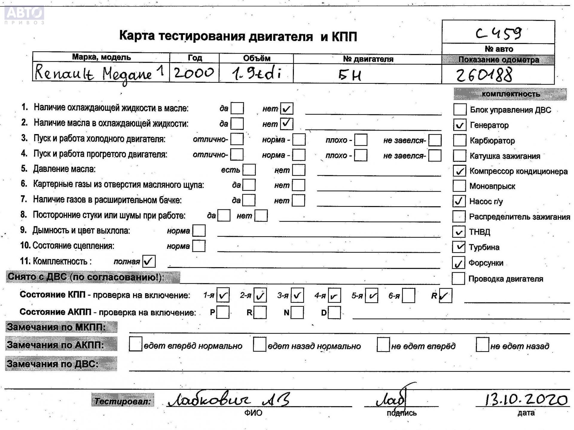| Автомобиль / VIN: | C0459 VF1KA0N0521853658 |