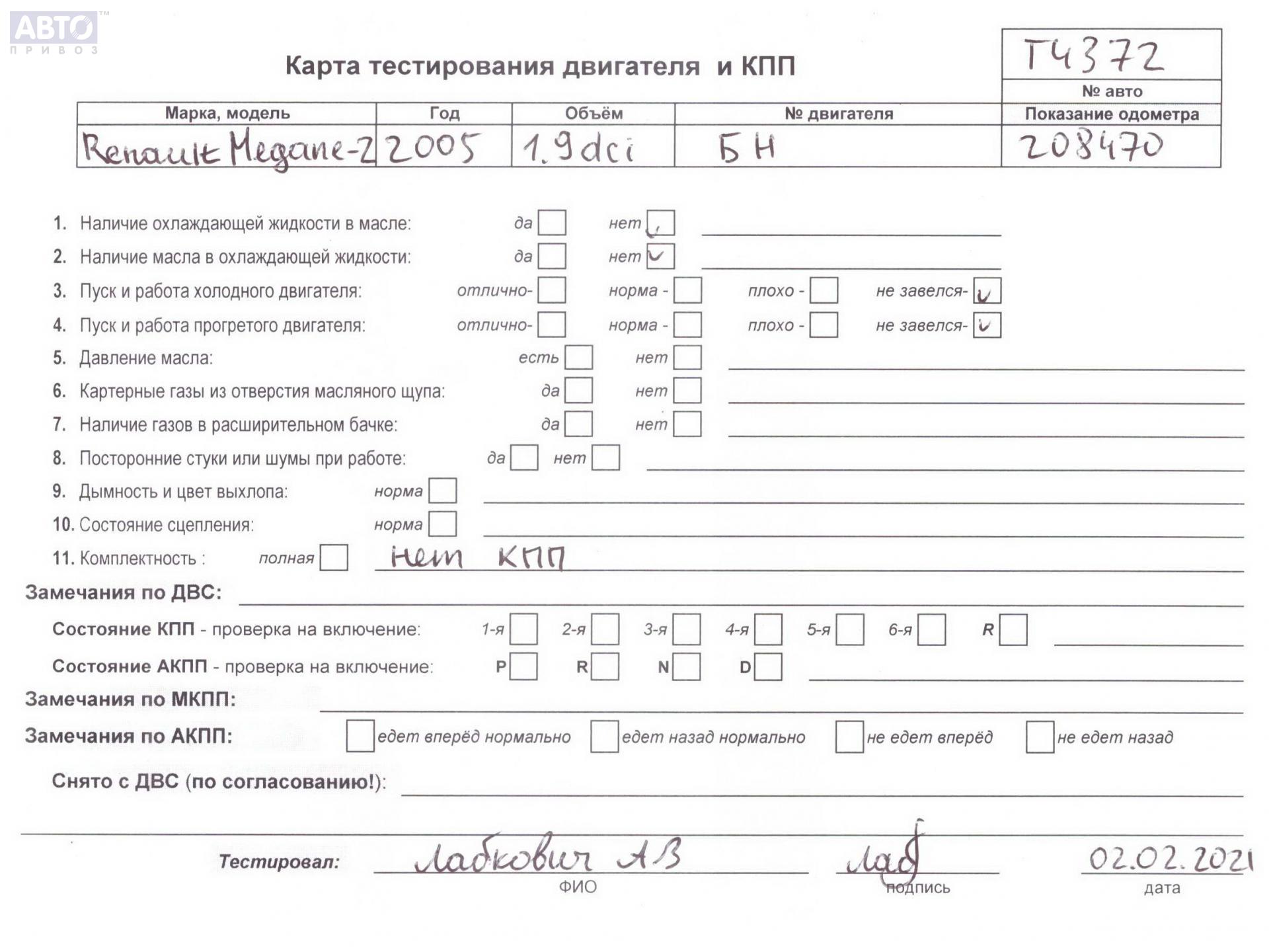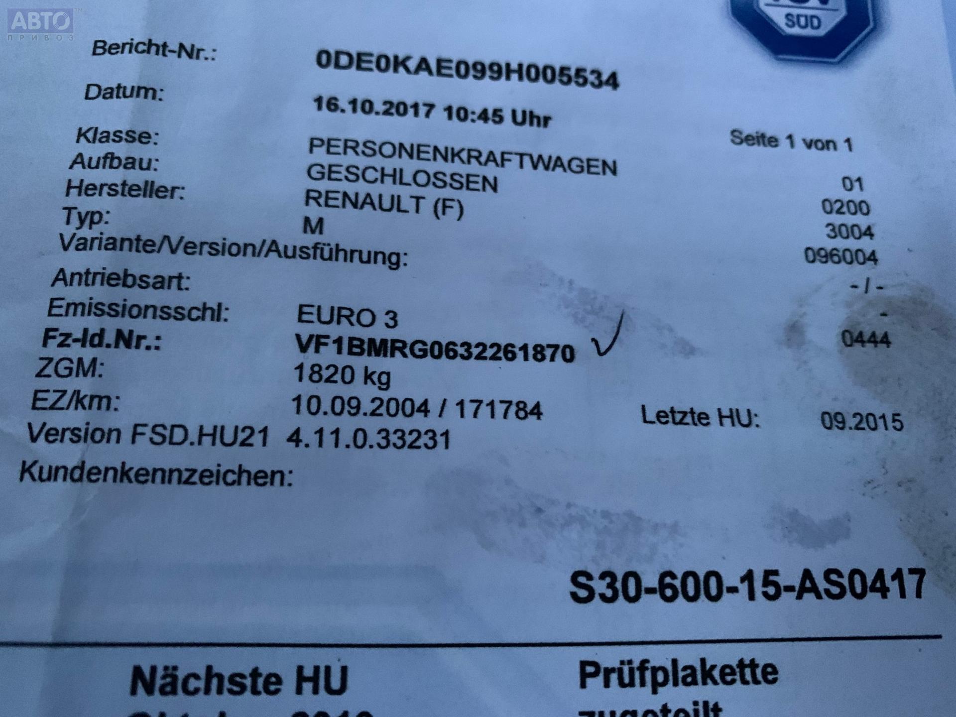 | Автомобиль / VIN: | T4372 VF1BMRG0632261870 |