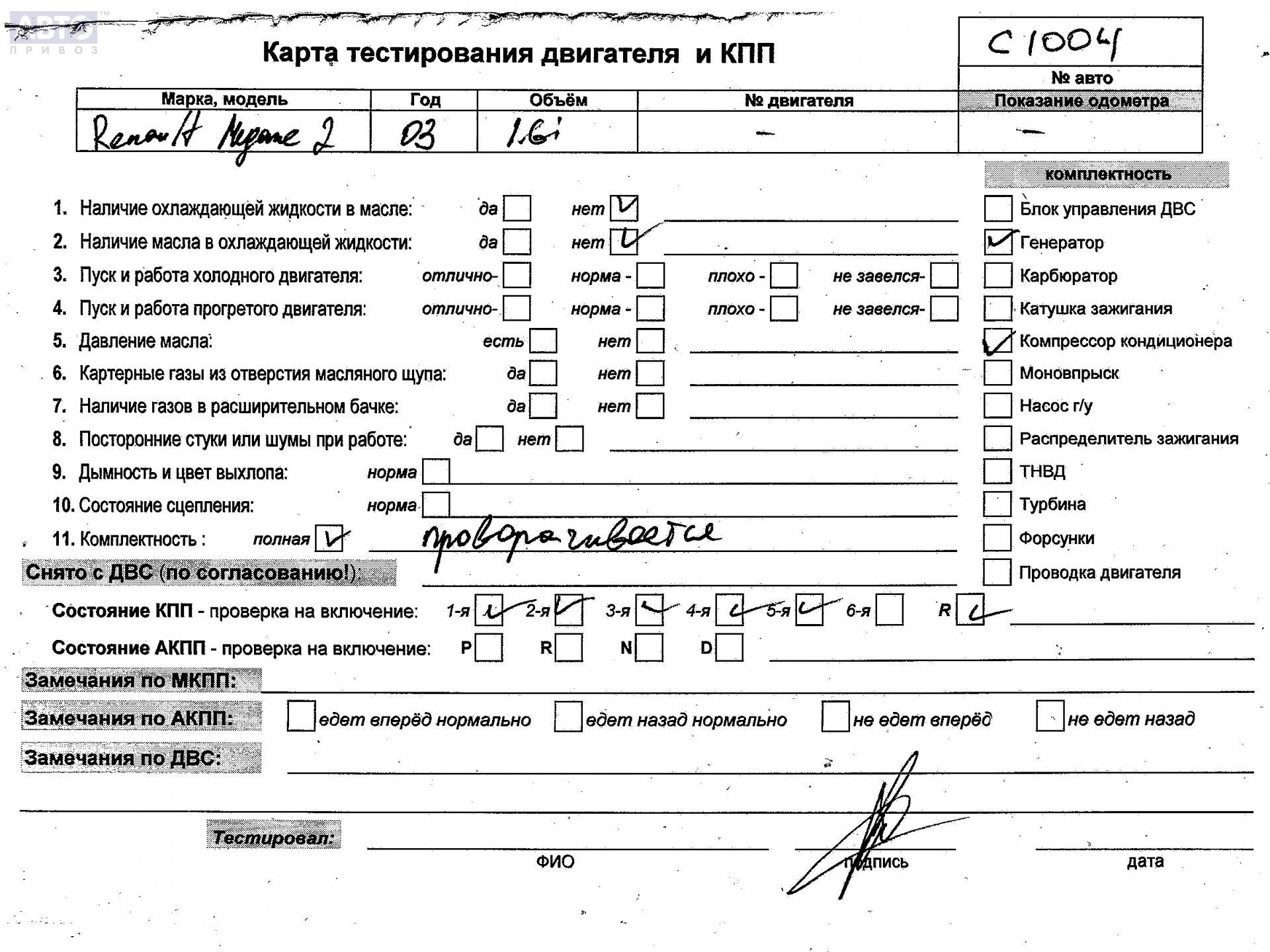 | Автомобиль / VIN: | C1004 VF1KM0J0H29441360 |