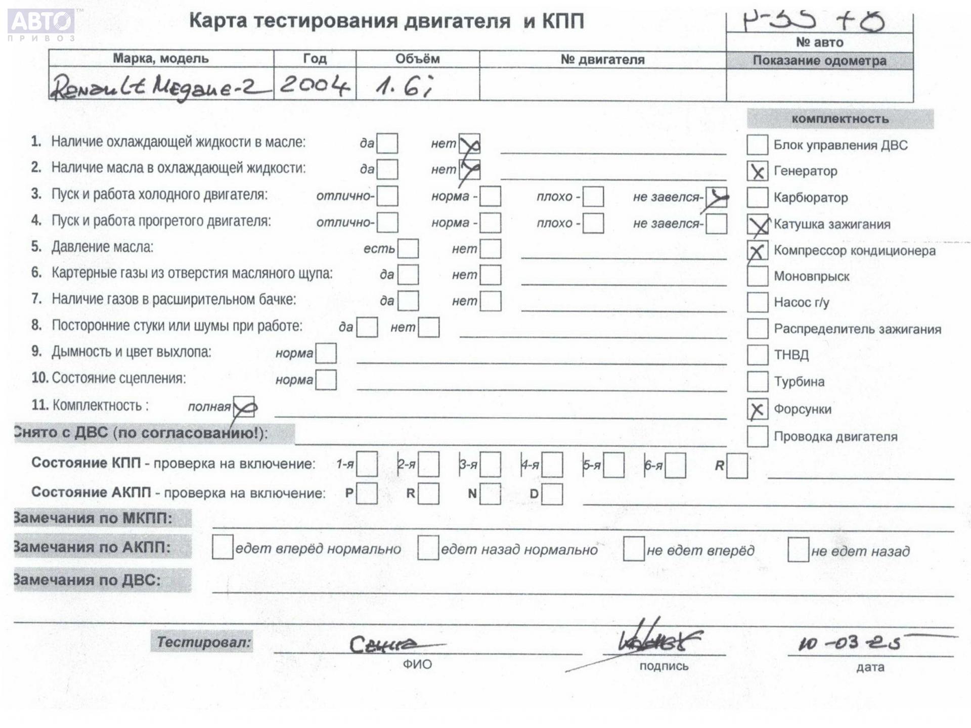 | Марка / Модель / Год: | Renault Megane II (2002-2008) 2004 |