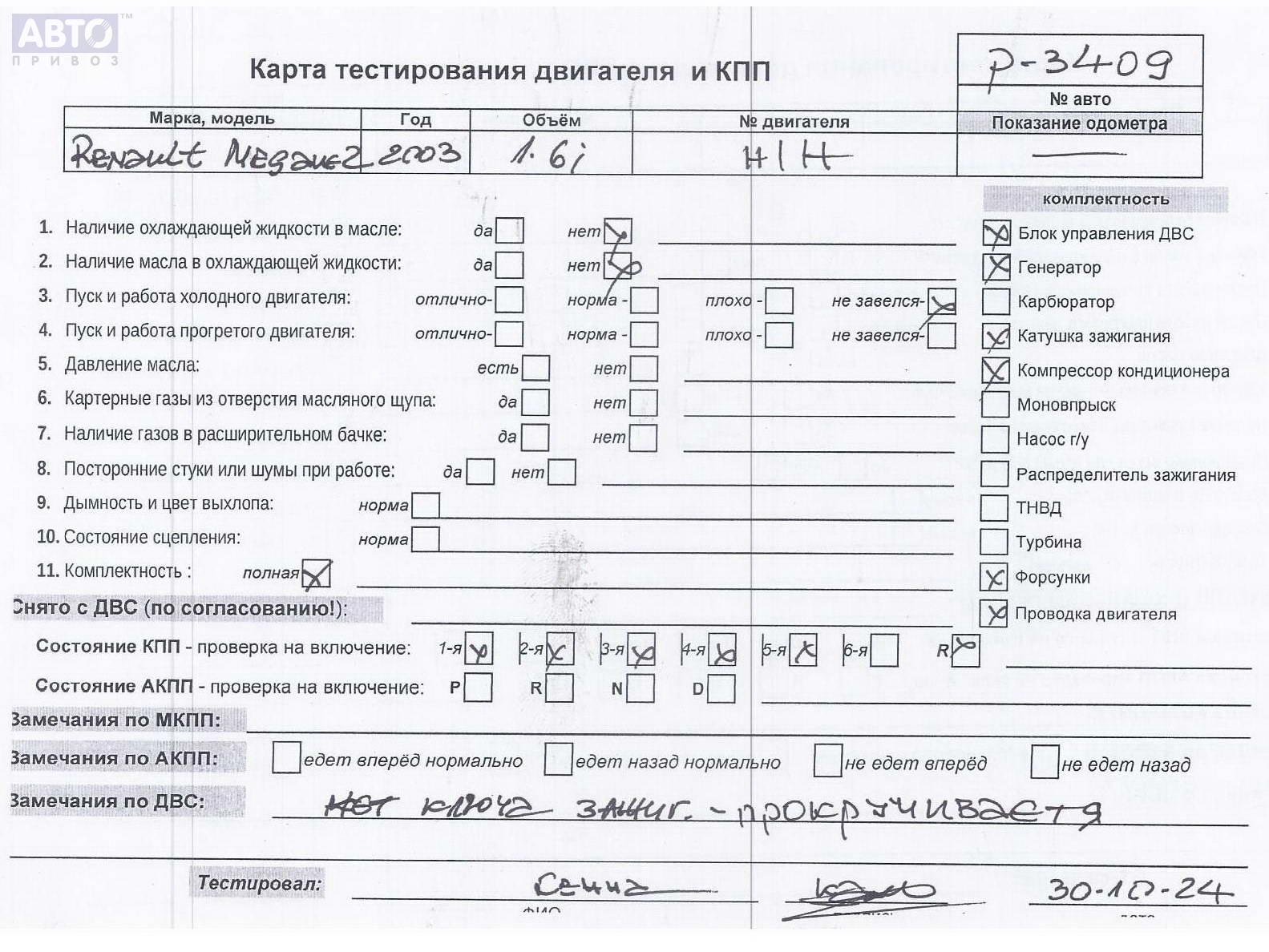 | Автомобиль / VIN: | P3409 VF1CM0J0H28831762 |