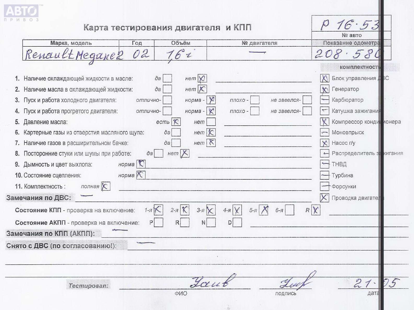 | Автомобиль / VIN: | P1653 VF1BM0J0H27630560 |