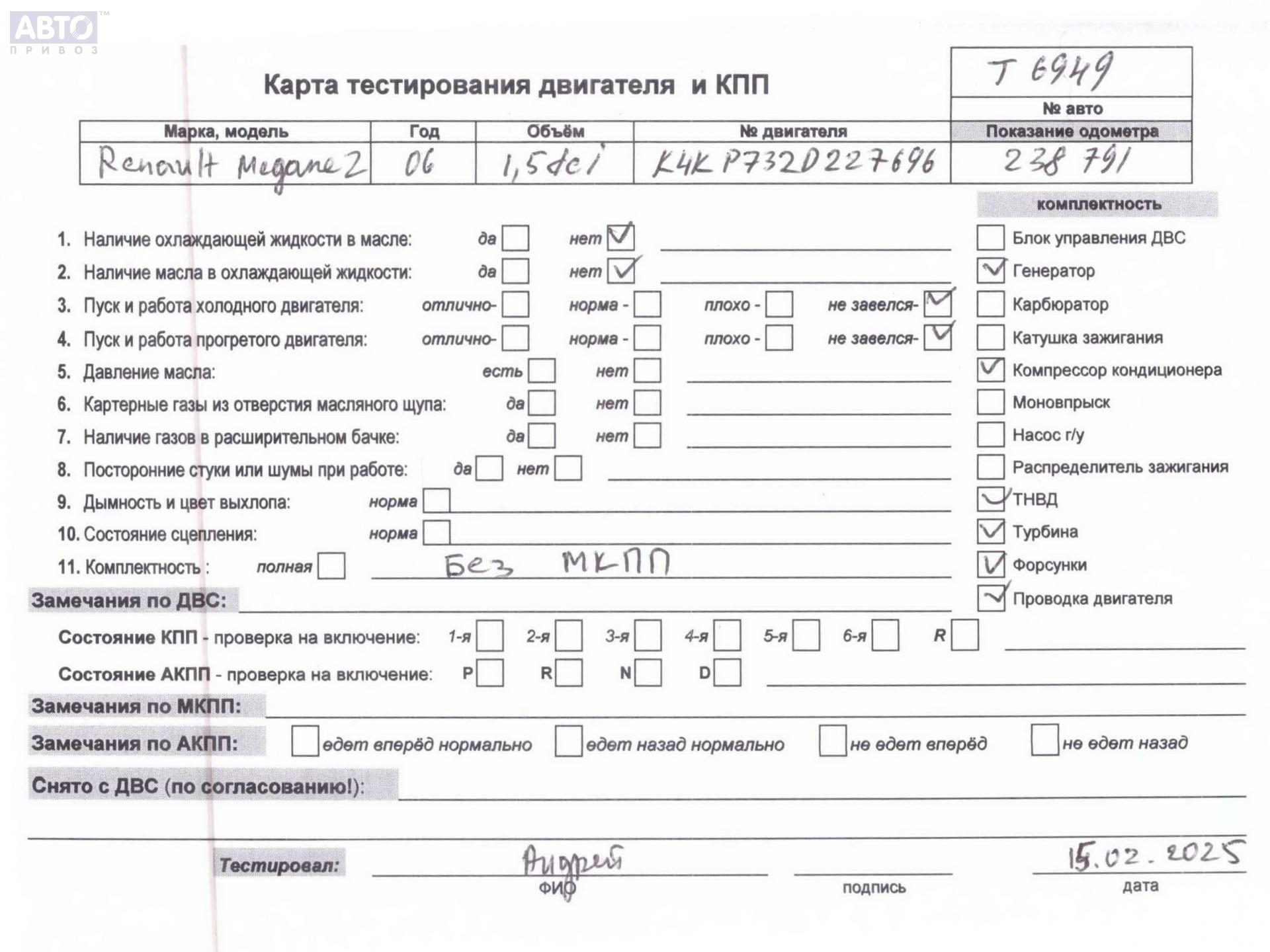 | Автомобиль / VIN: | T6949 VF1KMSEC636962256 |