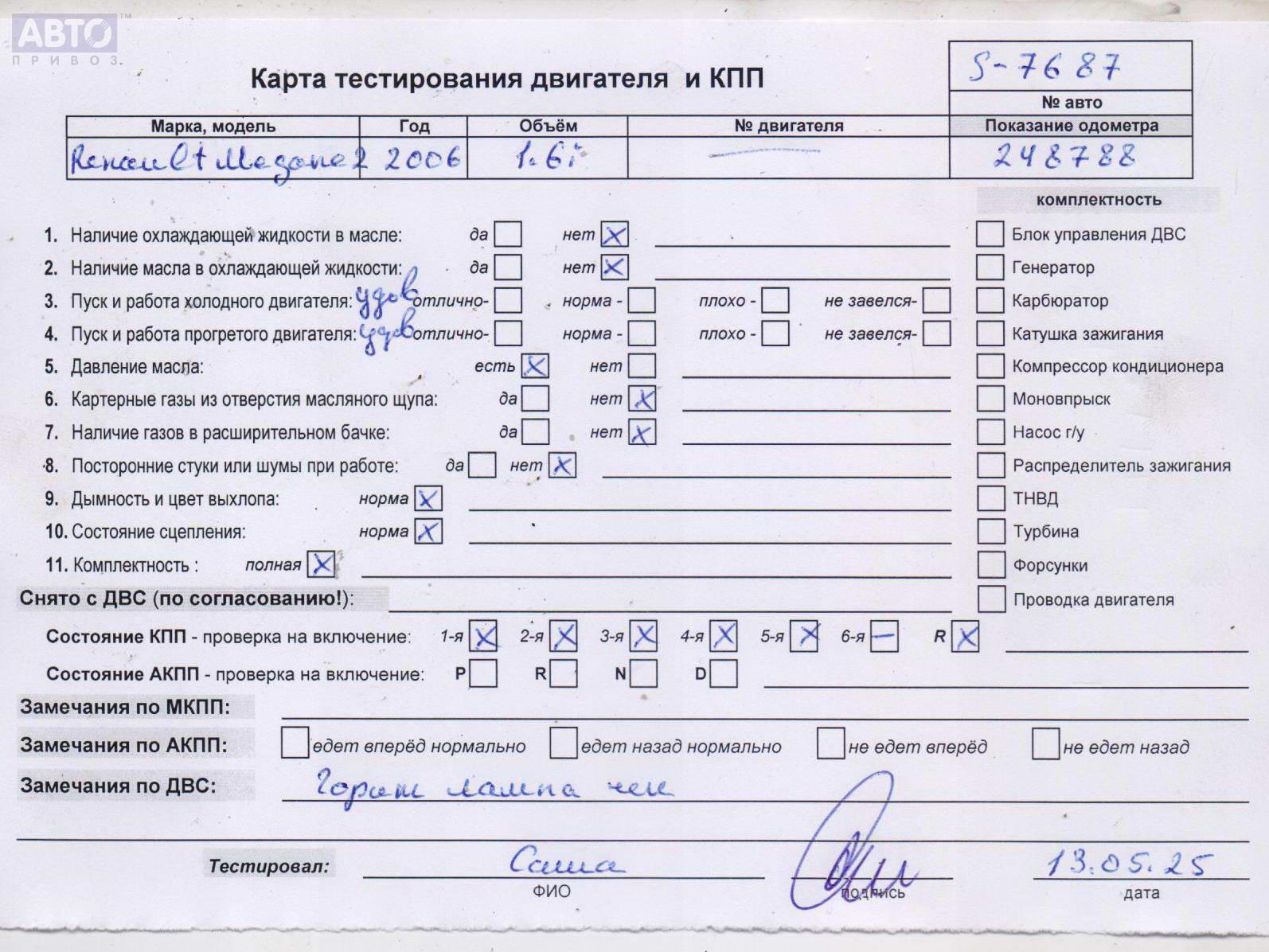 | Автомобиль / VIN: | S7687 VF1KM1R0H35811143 |