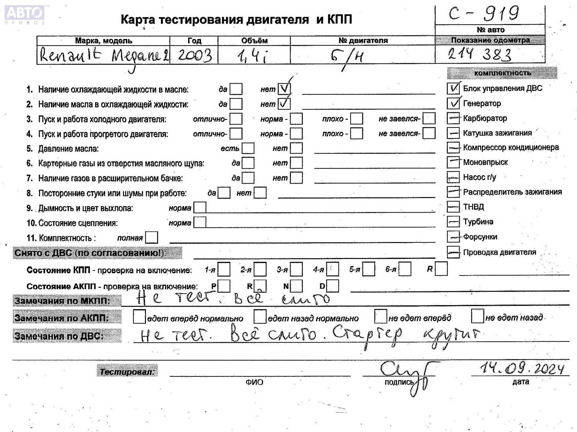 | Марка / Модель / Год: | Renault Megane II (2002-2008) 2003 |