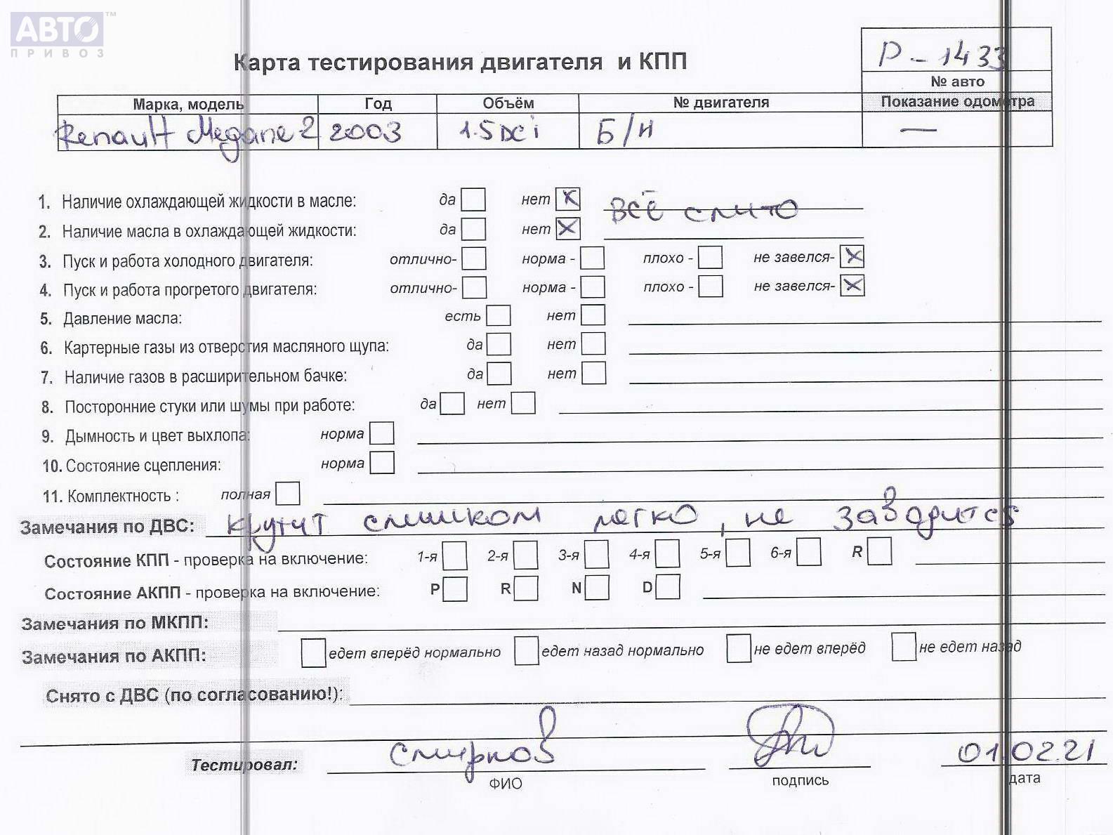 | Марка / Модель / Год: | Renault Megane II (2002-2008) 2003 |