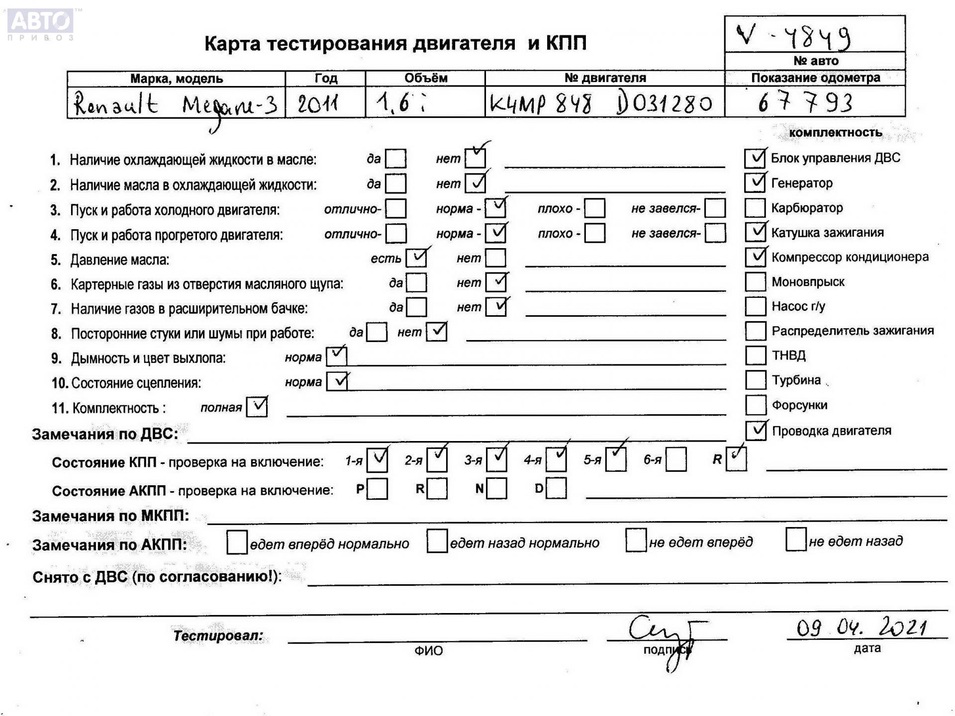 | Марка / Модель / Год: | Renault Megane III (2008-2016) 2011 |