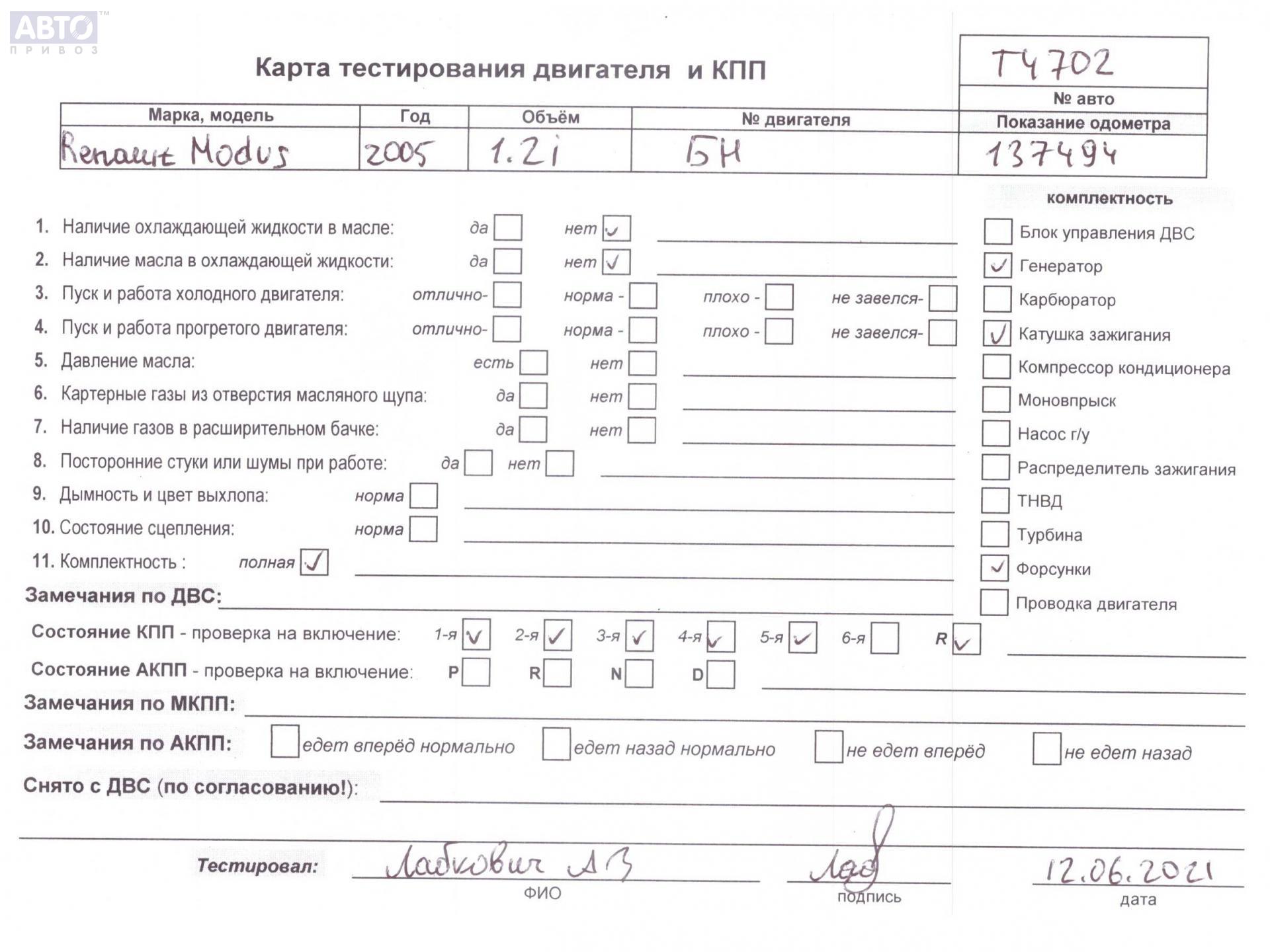 | Марка / Модель / Год: | Renault Modus 2005 |