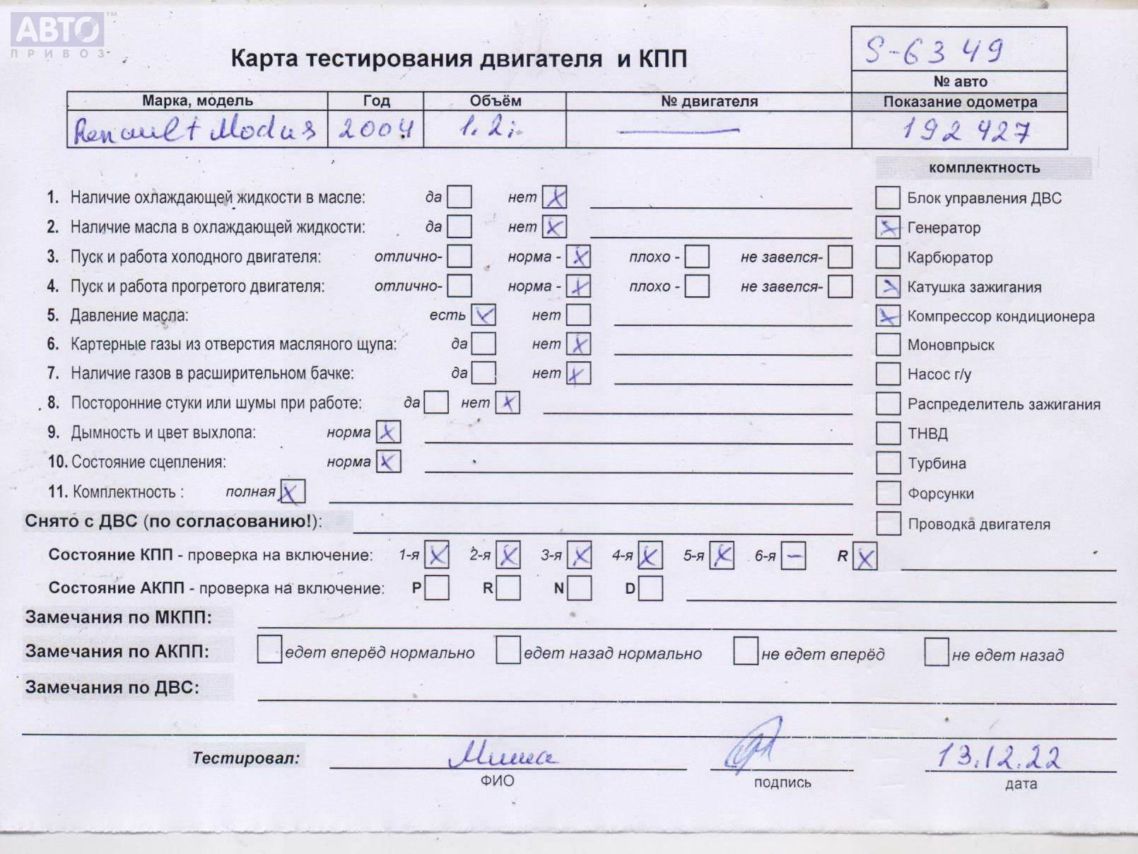 | Марка / Модель / Год: | Renault Modus 2004 |