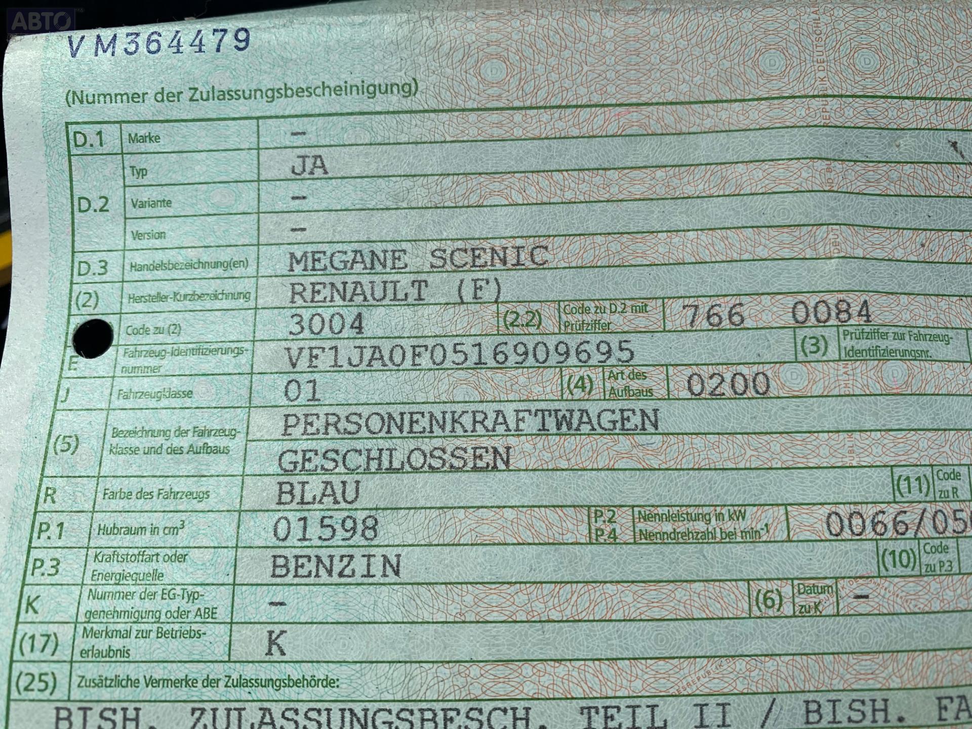 | Марка / Модель / Год: | Renault Scenic I (1996-2003) 1997 |