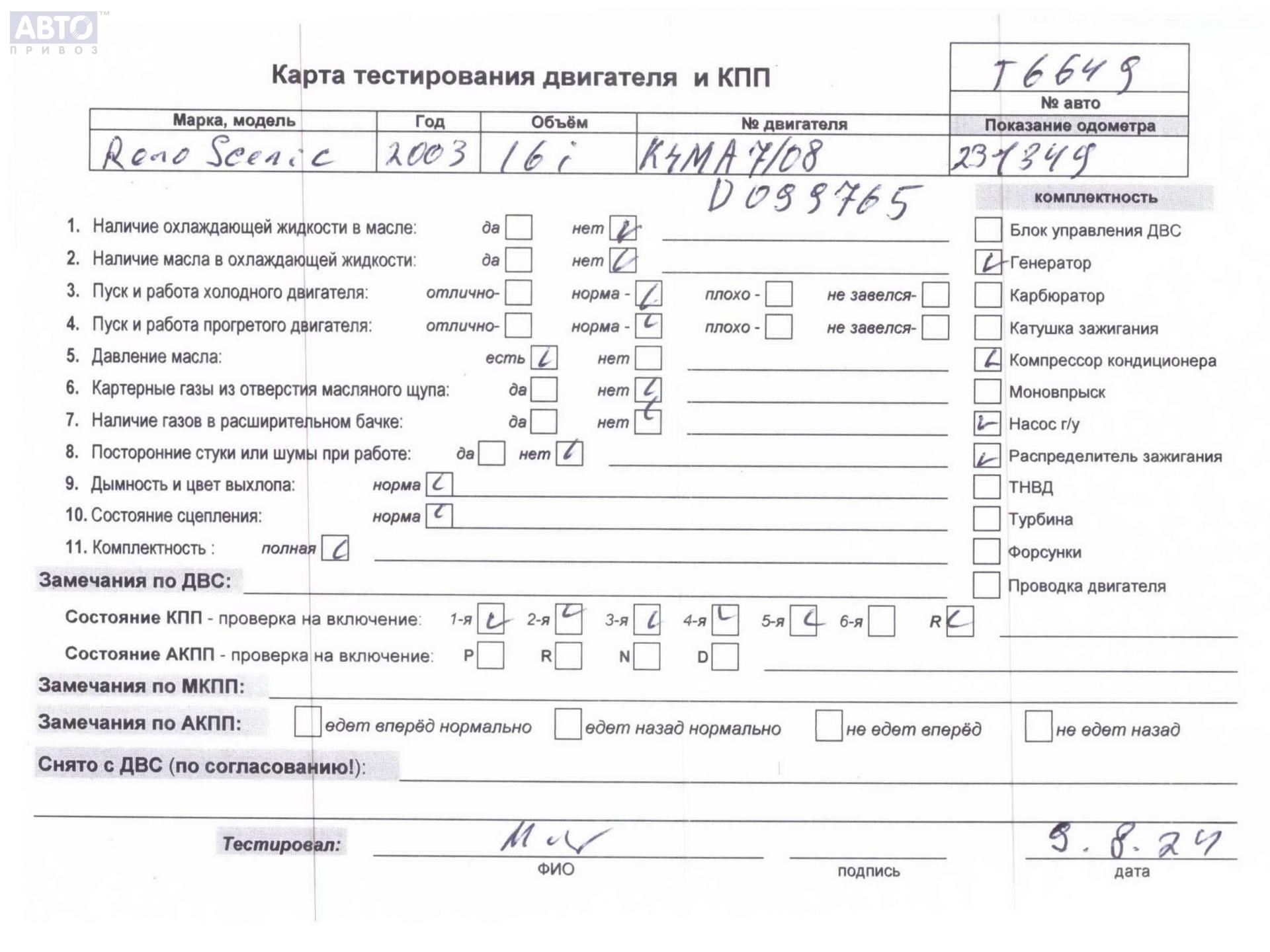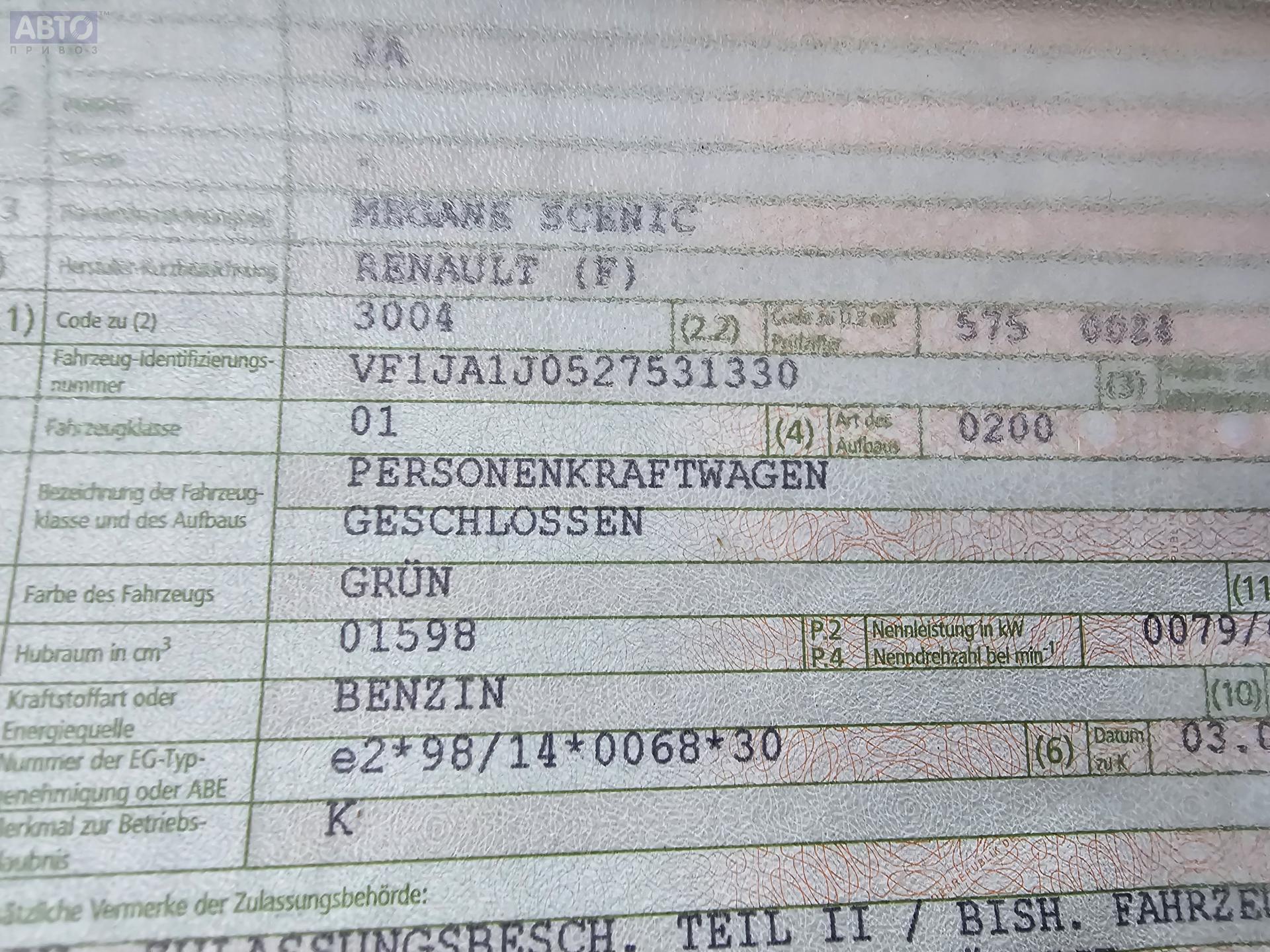| Марка / Модель / Год: | Renault Scenic I (1996-2003) 2002 |