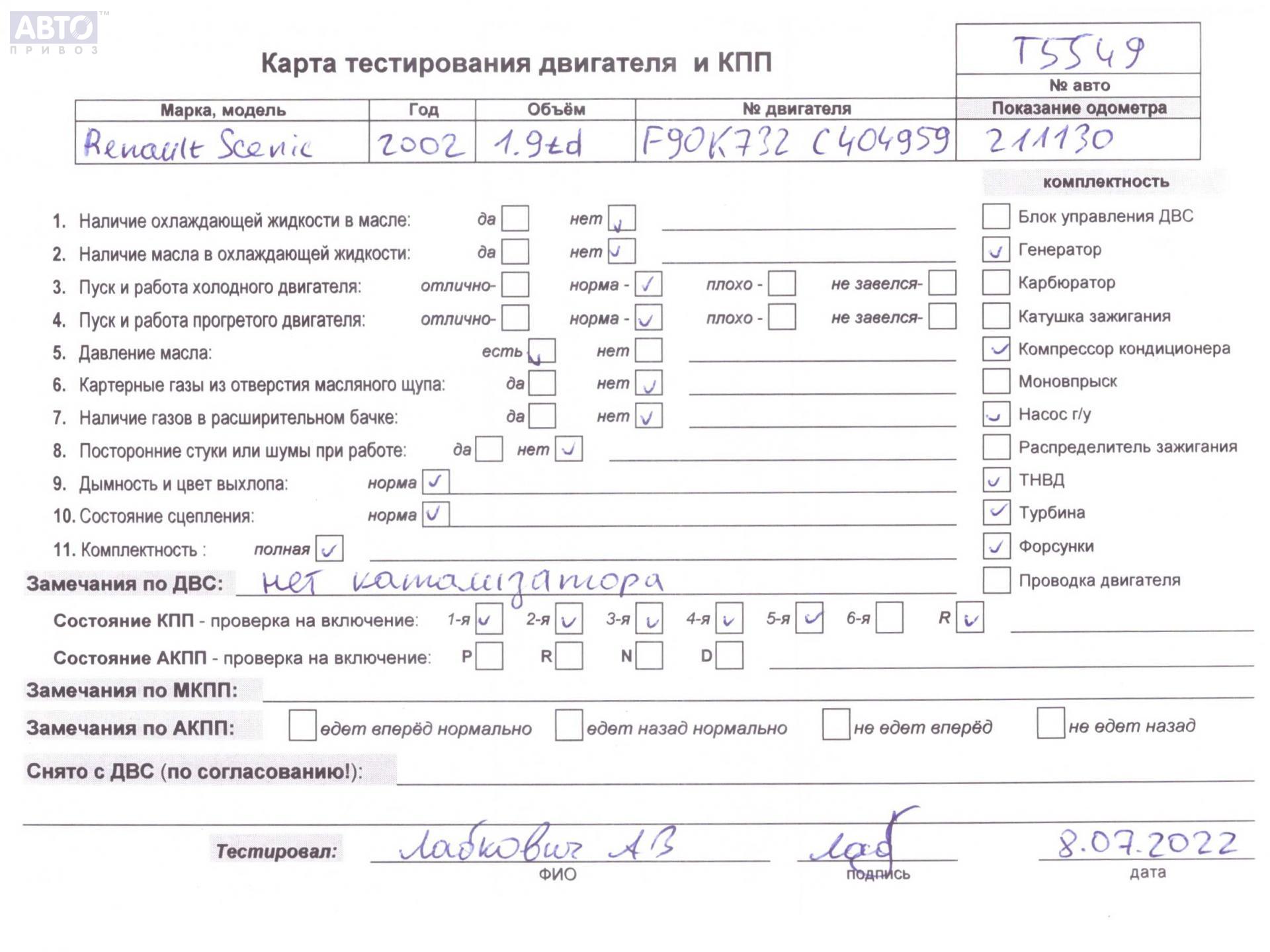 | Марка / Модель / Год: | Renault Scenic I (1996-2003) 2002 |