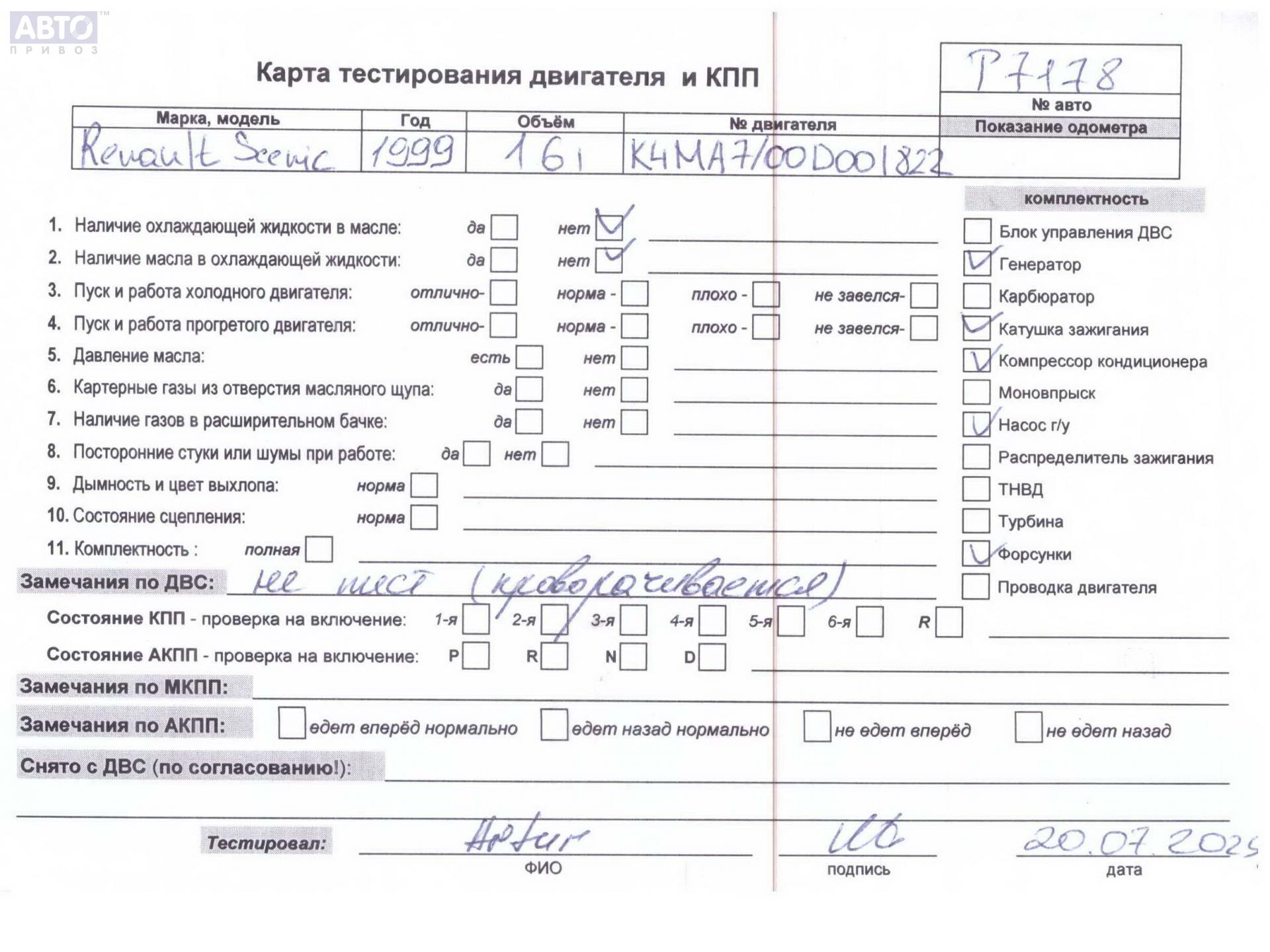 | Автомобиль / VIN: | T7178 VF1JA040519524911 |