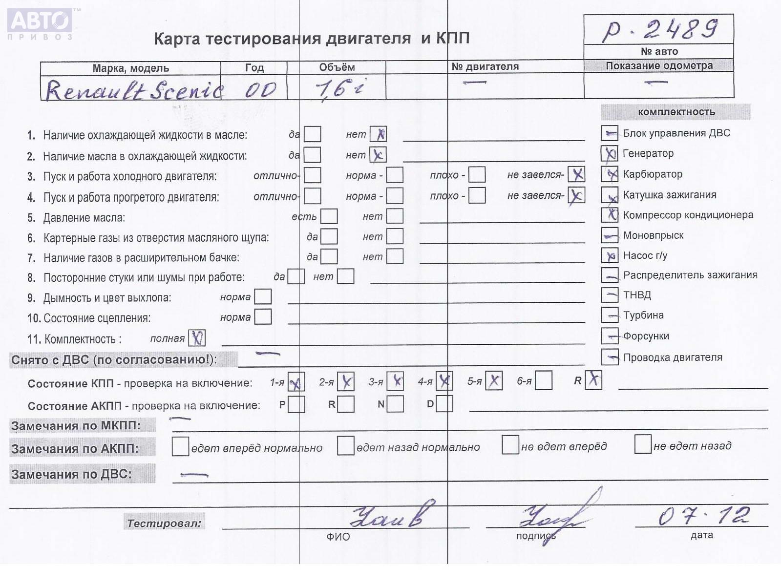 | Автомобиль / VIN: | P2489 VF1JA04N523076685 |
