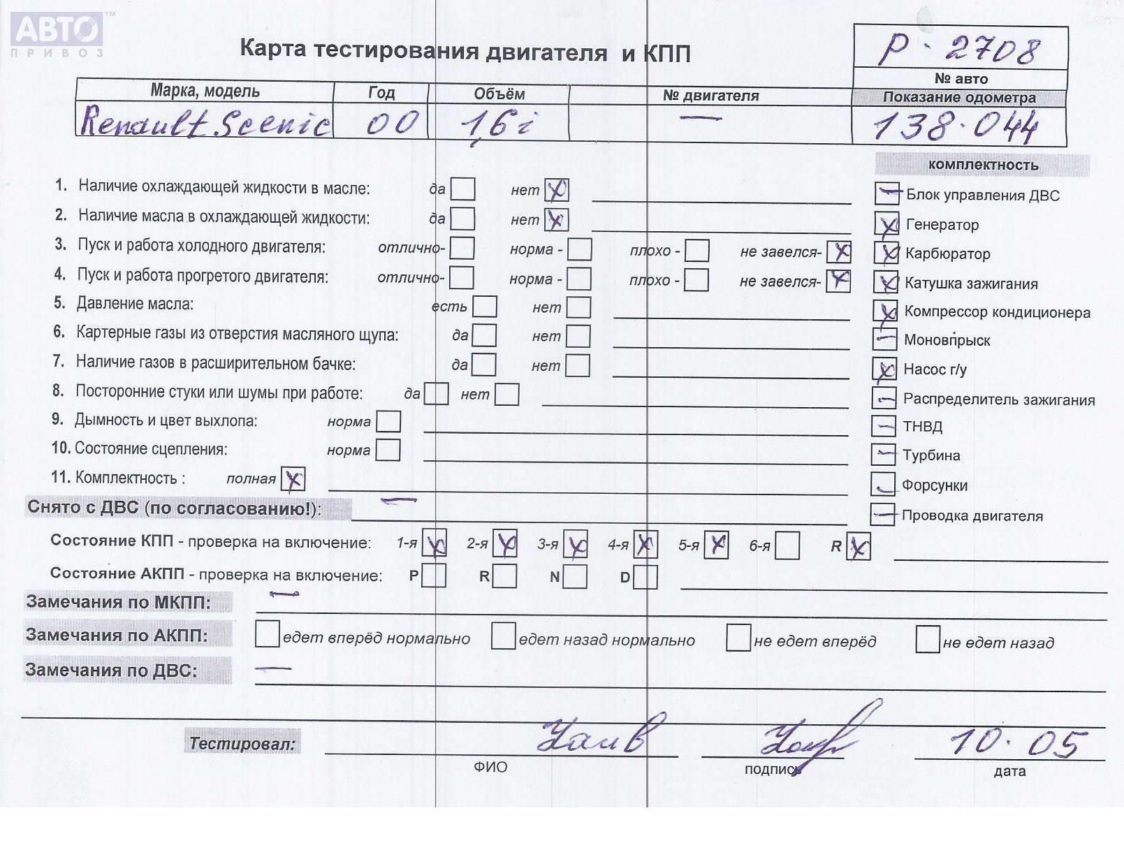 | Марка / Модель / Год: | Renault Scenic I (1996-2003) 2000 |
