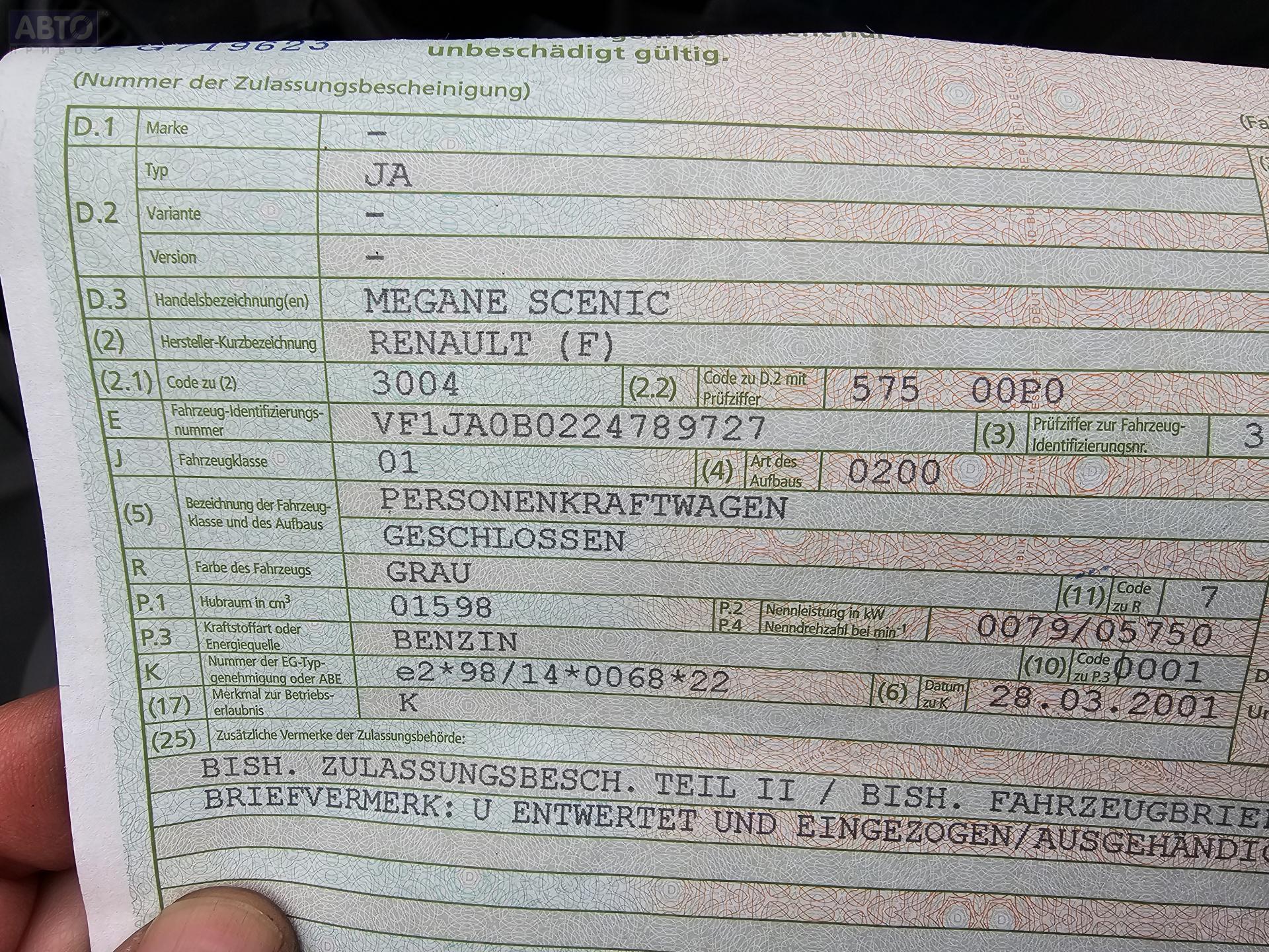 | Марка / Модель / Год: | Renault Scenic I (1996-2003) 2001 |