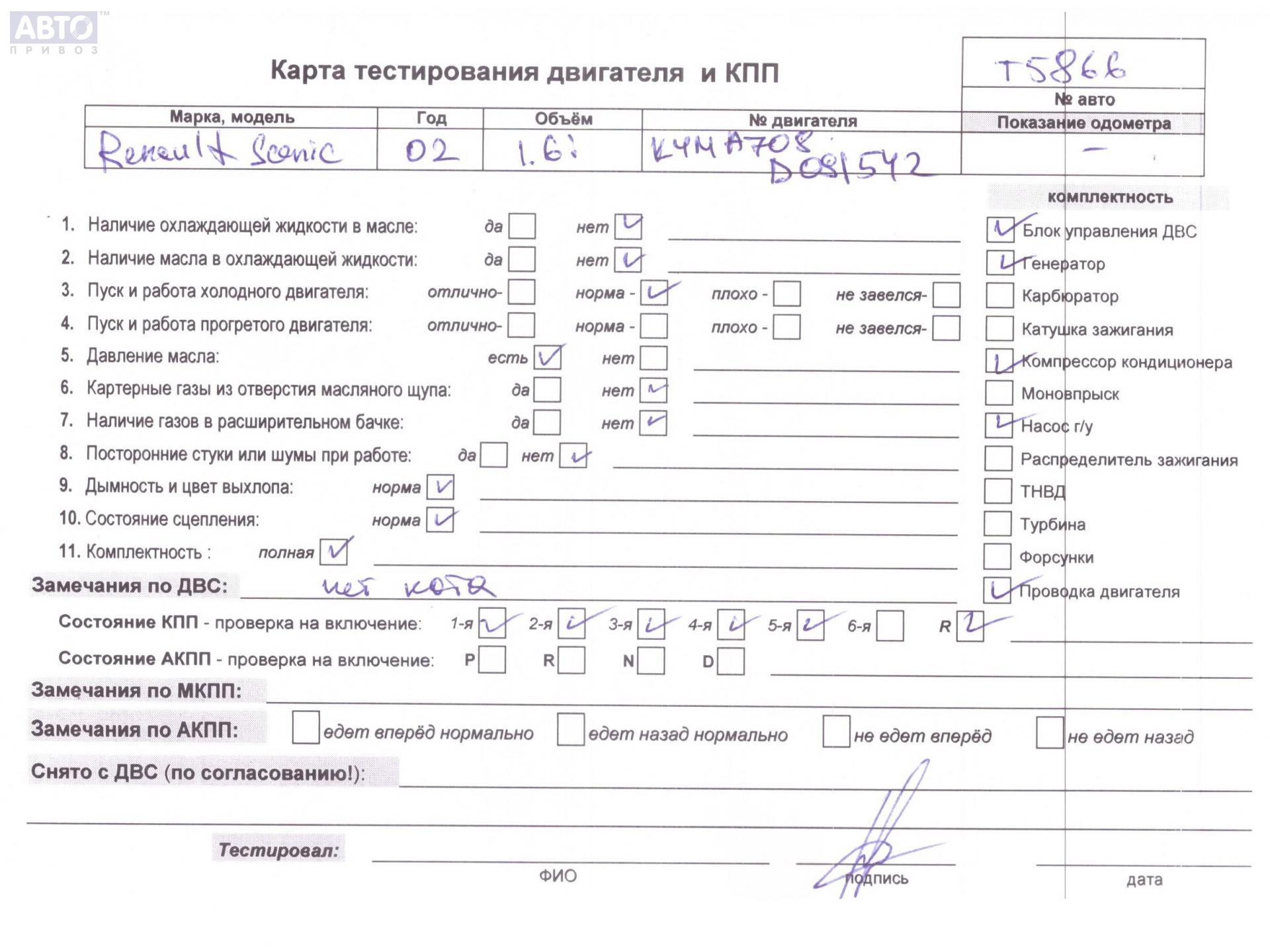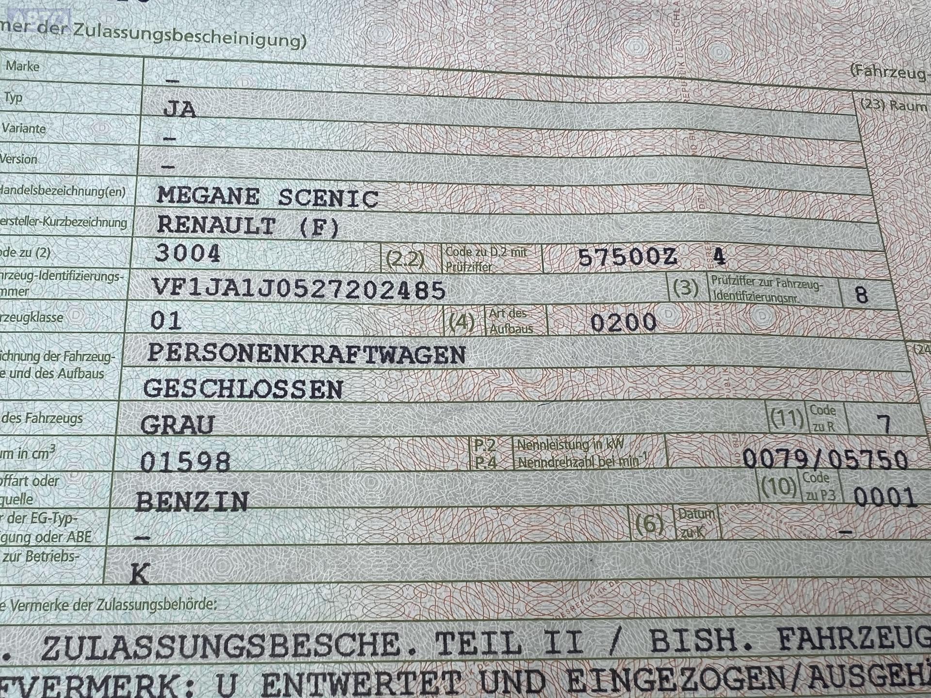 | Марка / Модель / Год: | Renault Scenic I (1996-2003) 2002 |