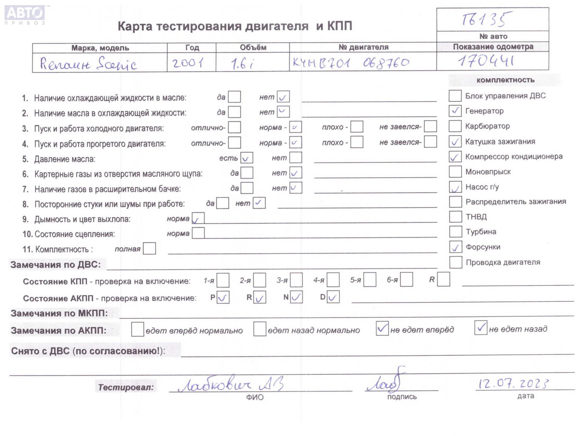 | Марка / Модель / Год: | Renault Scenic I (1996-2003) 2001 |