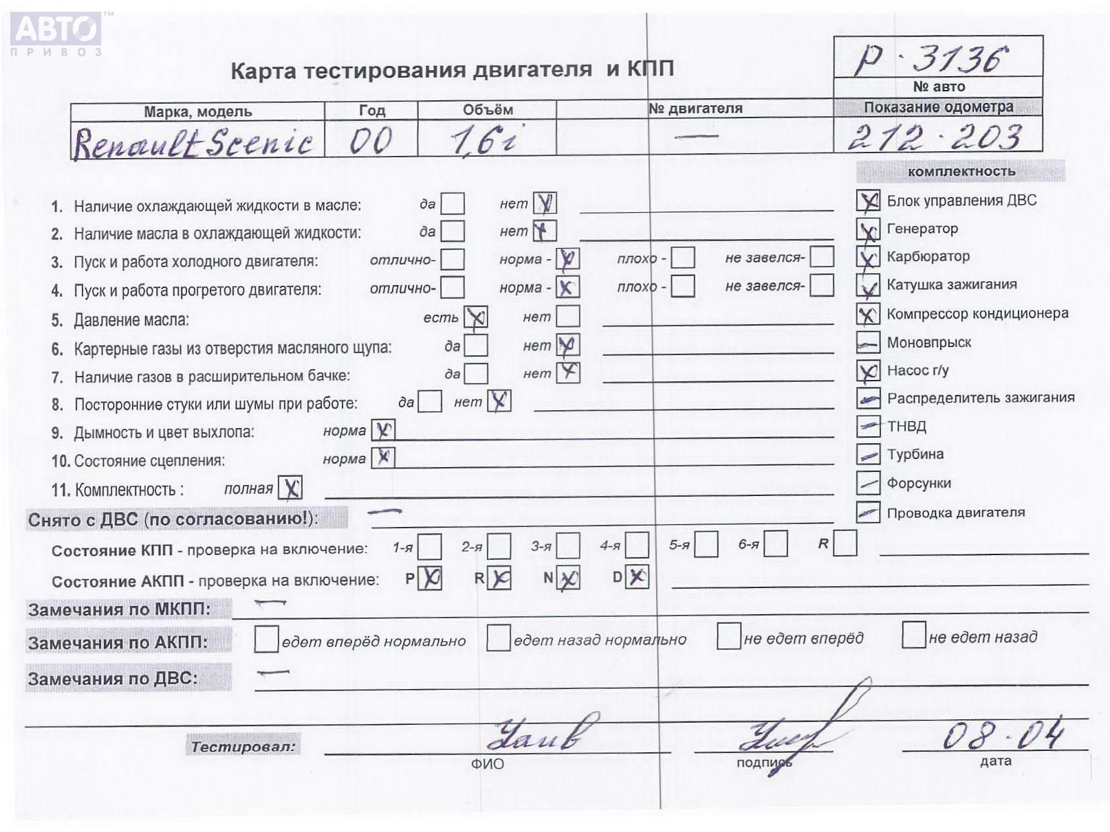 | Марка / Модель / Год: | Renault Scenic I (1996-2003) 2001 |