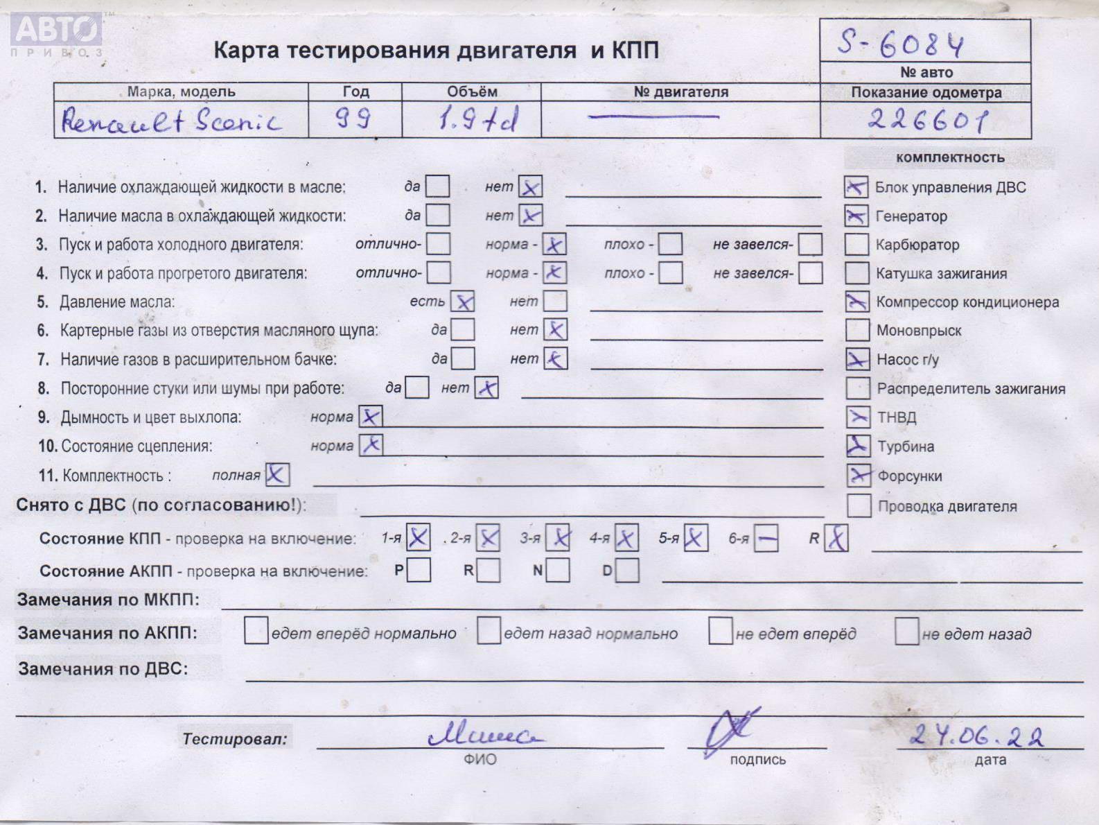 | Автомобиль / VIN: | S6084 VF1JA0NL519782351 |